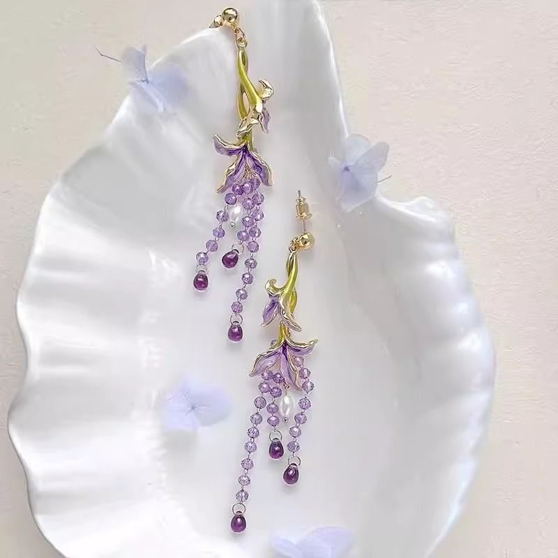 ライラック藤〜スーパーフェアリーロングパープルタッセルイヤリングフォレストスタイルニッチ絶妙な痩身クールイヤリング女性用
