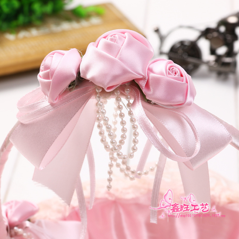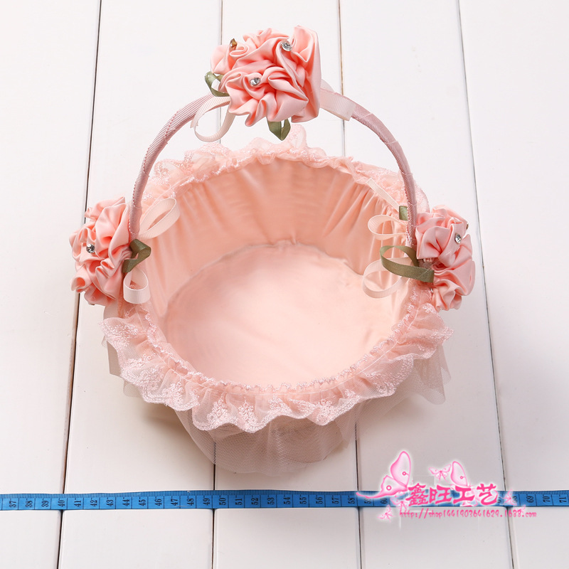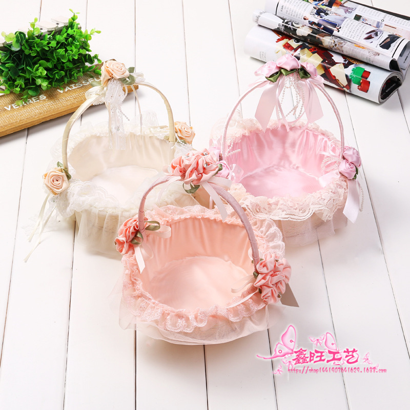 厂家结婚花篮货源缎布蕾丝道具花篮多款西式婚礼花童篮子现货批发