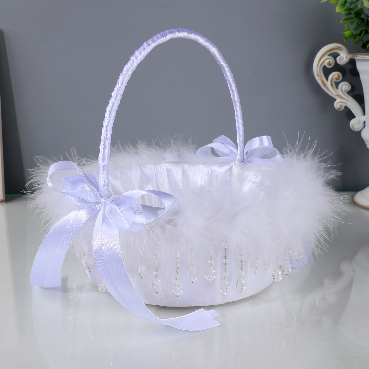 梦幻羽毛水晶装饰婚礼花篮蝴蝶结新娘花童撒花篮婚庆仪式道具提篮