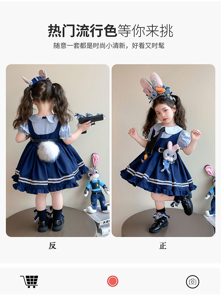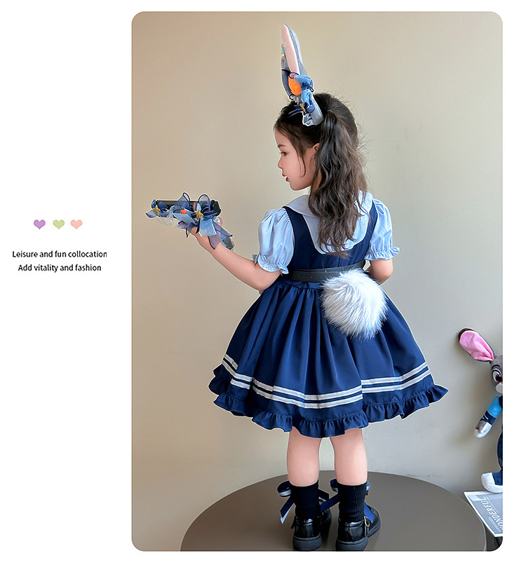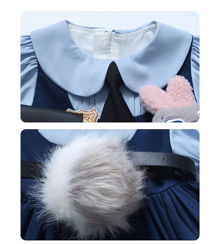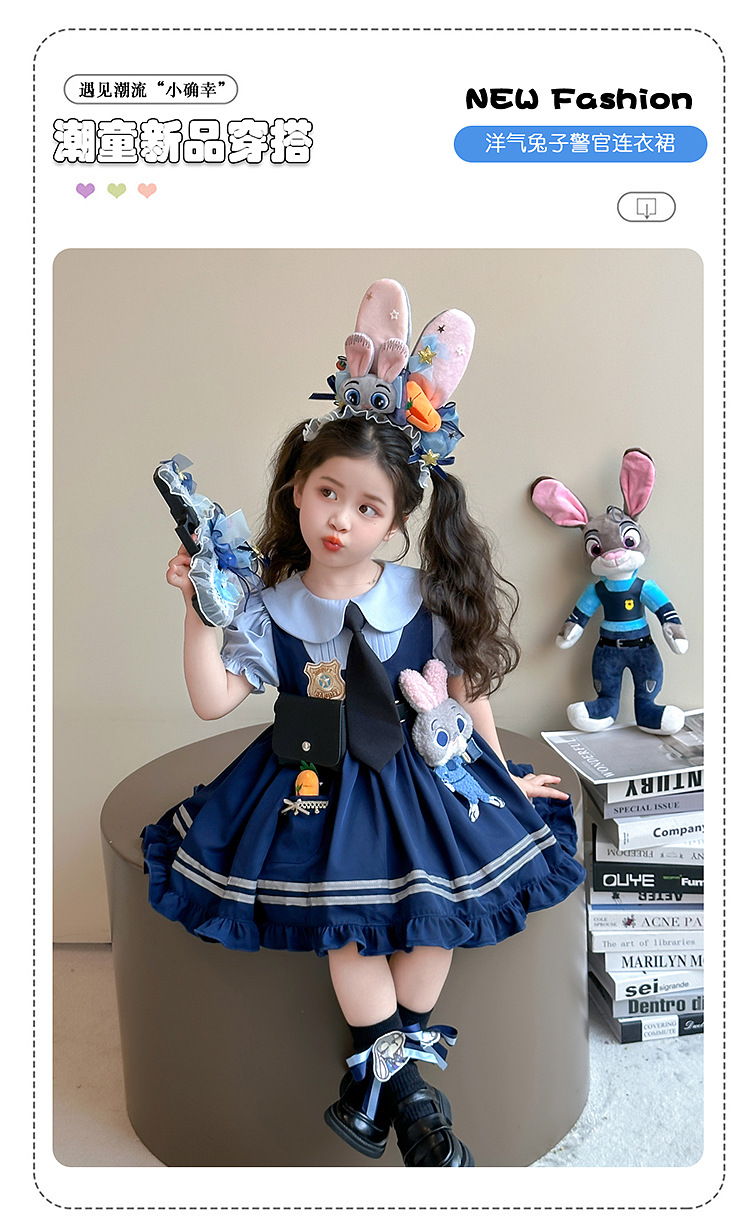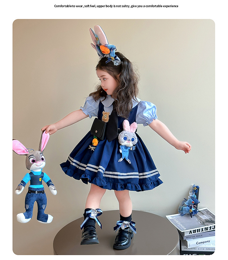 青(小さな帽子),ブルー(ヘアピン),ブルー(ネクタイバッグベルトうさぎ),青(ピストル),青(大きな帽子),青(人形),青(ヘッドギア),黒(ソックス),ホワイト(バッスル),ブルー(スカート)