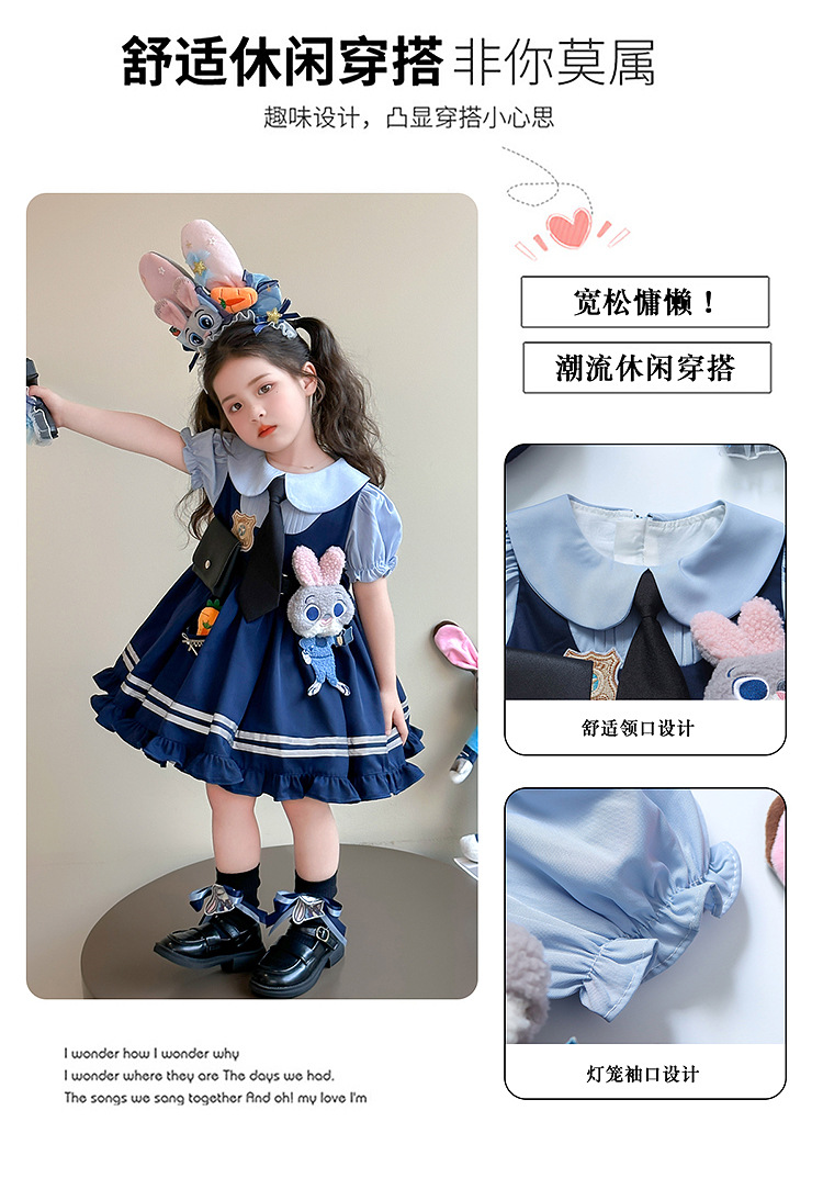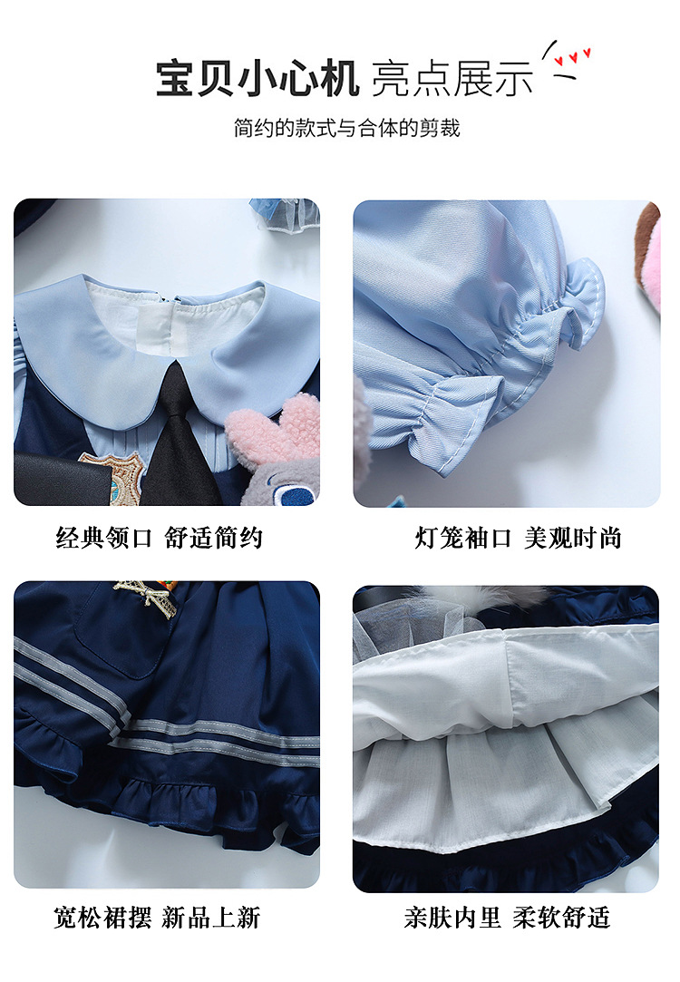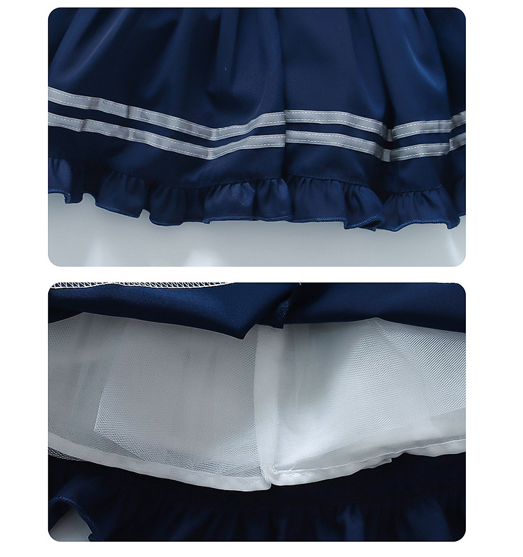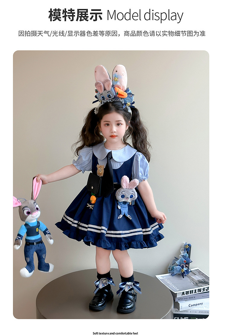 青(小さな帽子),ブルー(ヘアピン),ブルー(ネクタイバッグベルトうさぎ),青(ピストル),青(大きな帽子),青(人形),青(ヘッドギア),黒(ソックス),ホワイト(バッスル),ブルー(スカート)