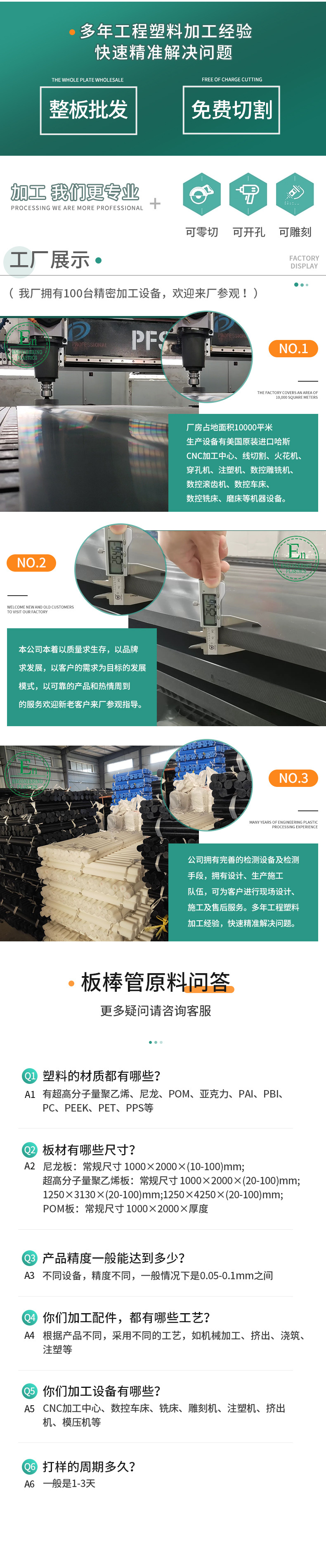 UHMW-PE、含油尼龙、MC尼龙、POM、PP、PE1000,PTFE,PEI,