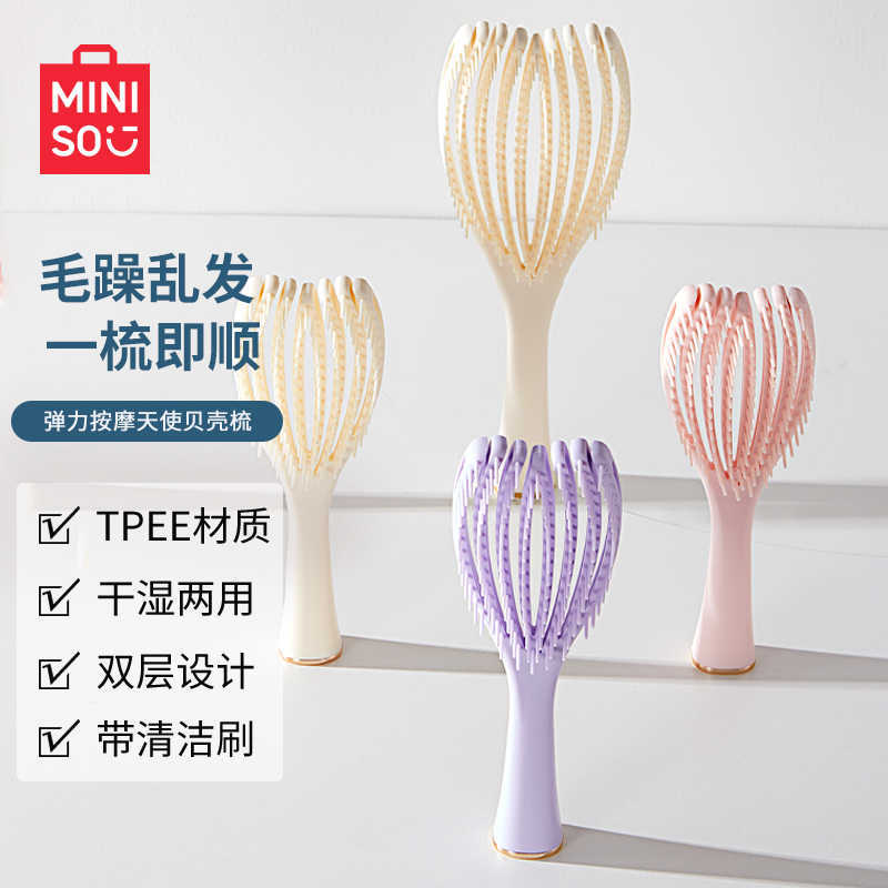 MINISO名創優品ミニ弾力マッサージ天使貝殻櫛マッサージ頭皮順髪櫛携帯小
