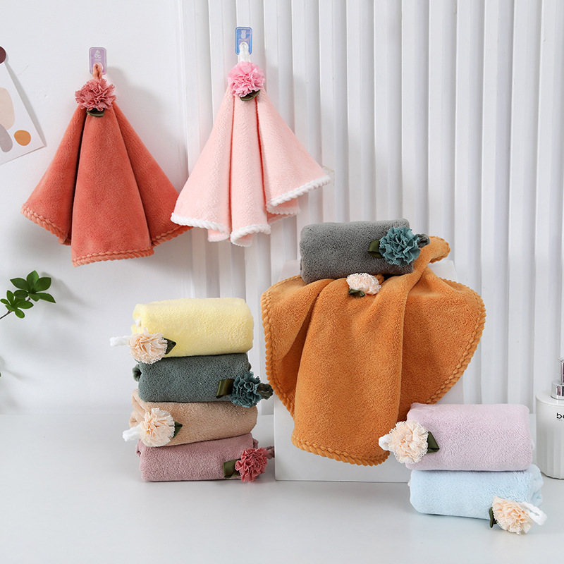 ハンギングハンドタオル、キッチンタオル、厚手の吸収性ベビーハンドタオル、漫画刺繍幼稚園タオル