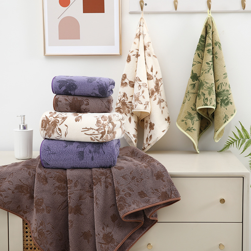 2026年新作コーラルベルベット洗顔タオル、吸水性が高く柔らかく、毛羽立ちにくい縁取り付きタオル、バスタオルセット