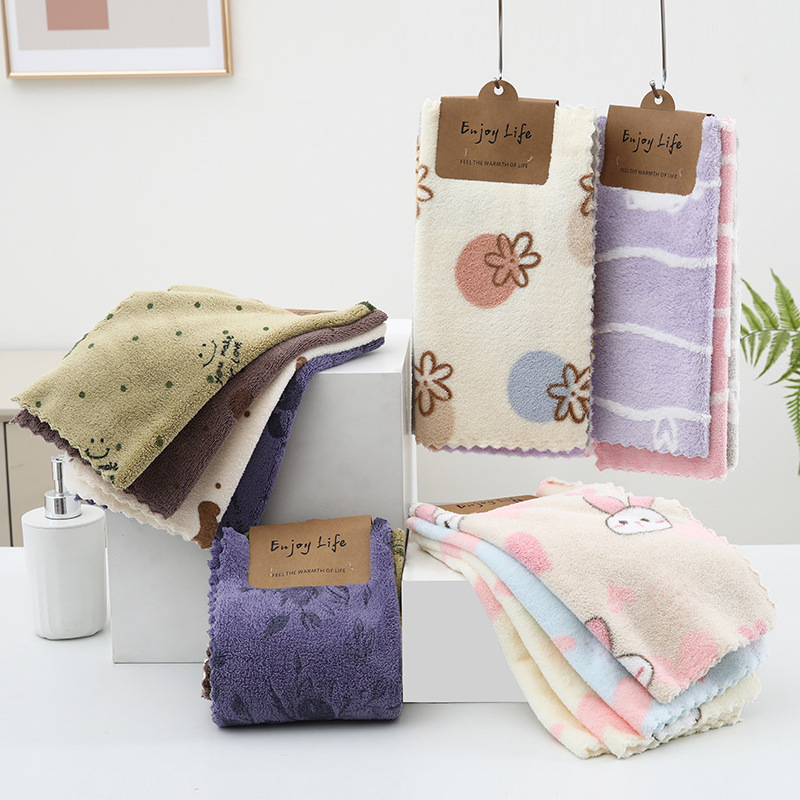 メーカー既製コーラルベルベットスクエアタオルキッチン吸収性雑巾子供用ハンドタオルドライとウェット両用クリーニングタオル