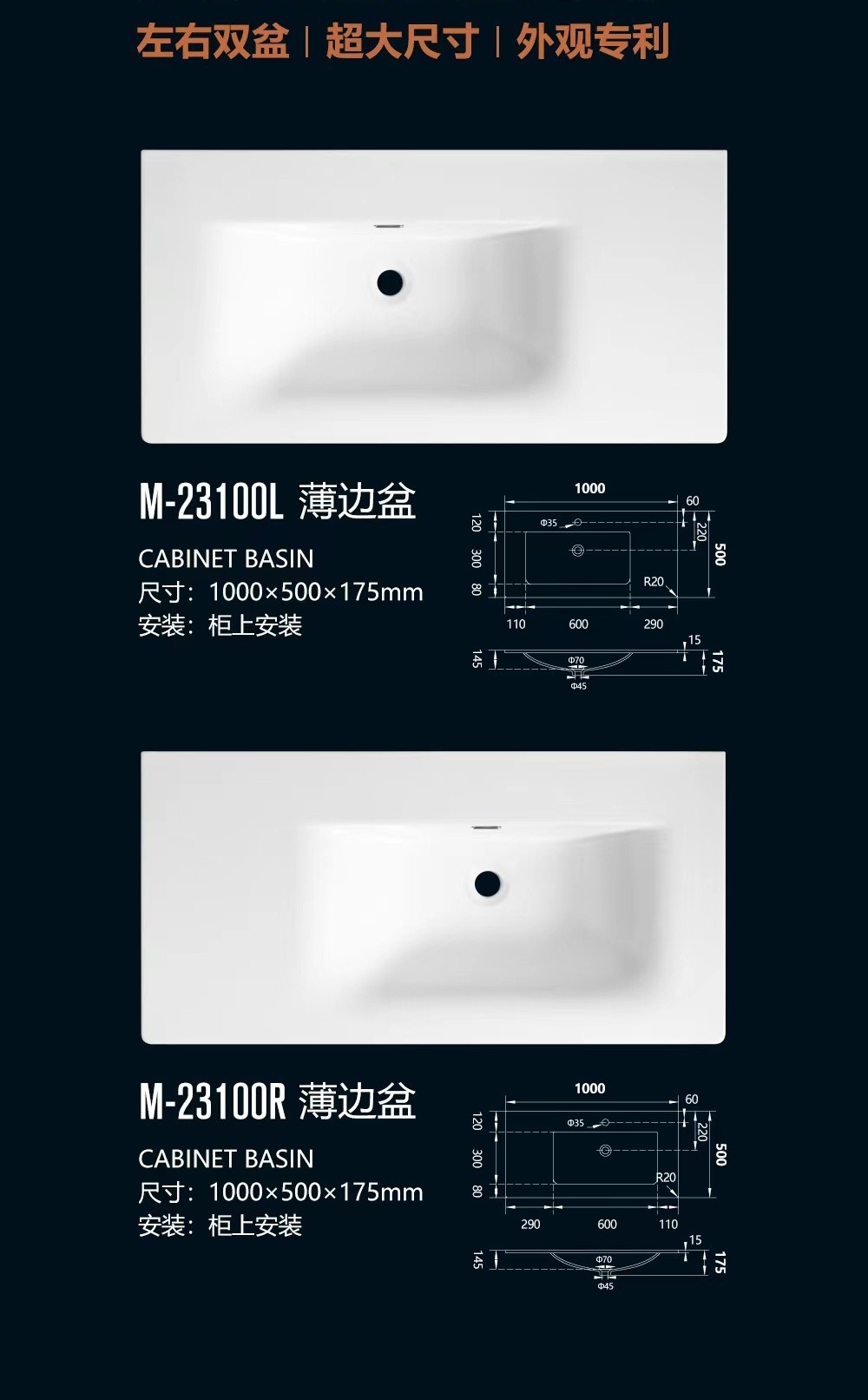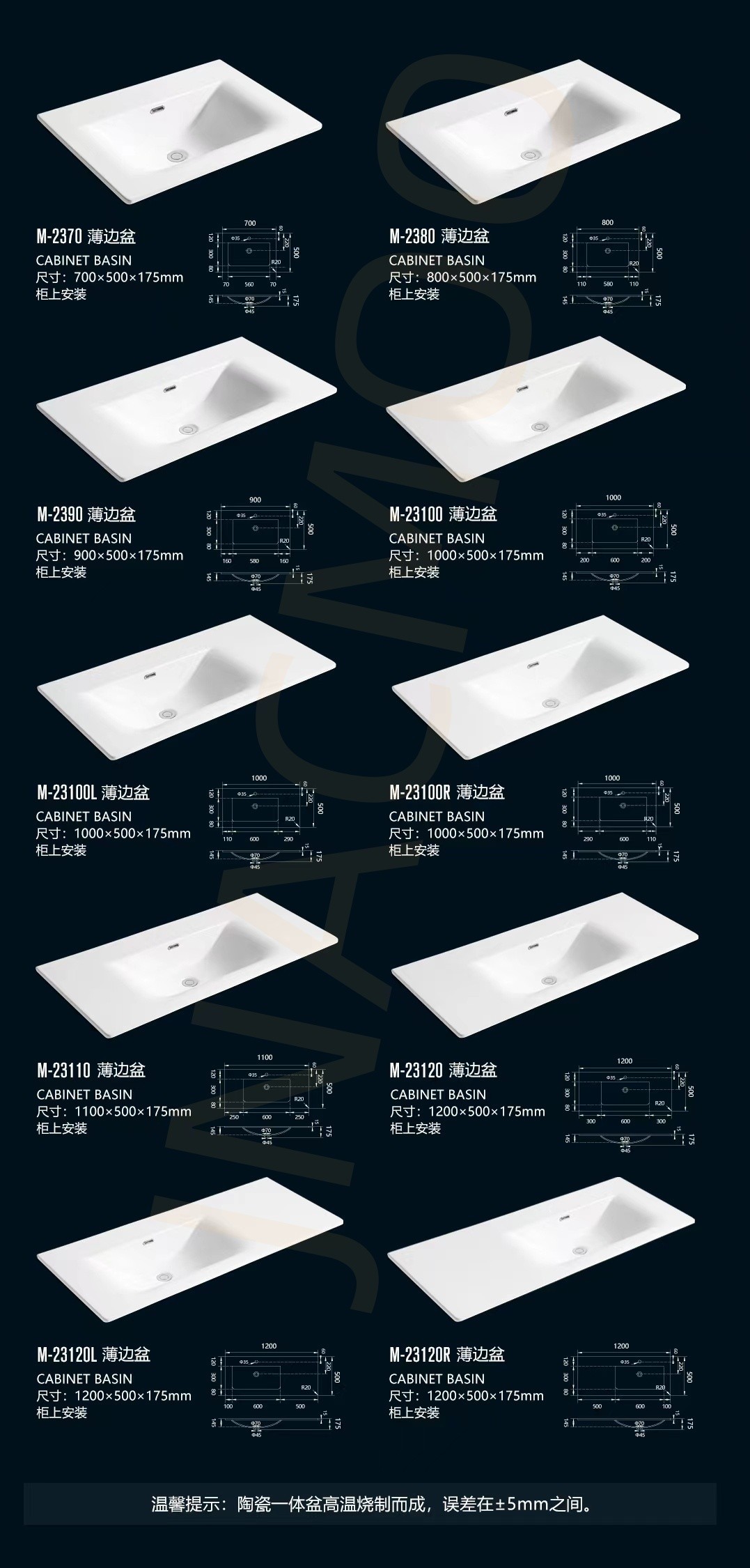 角丸一体成型セラミック洗面器、オーシャン洗面器、大型洗面器、洗面台、洗面台