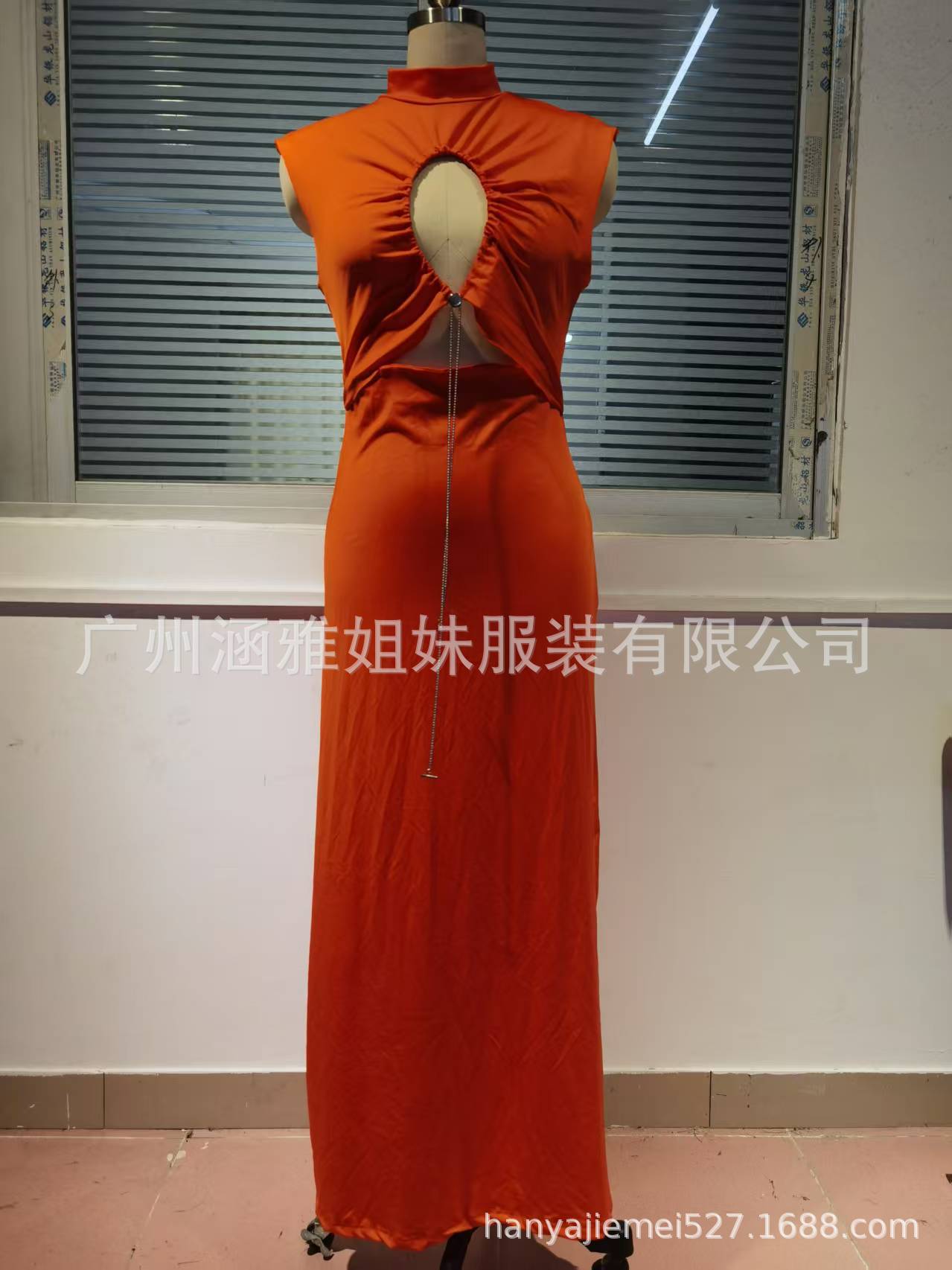 ヨーロッパとアメリカンスタイルのクロスボーダーレディース2025春夏新作セレブ無地レースアップホルターネック中空スリムドレス