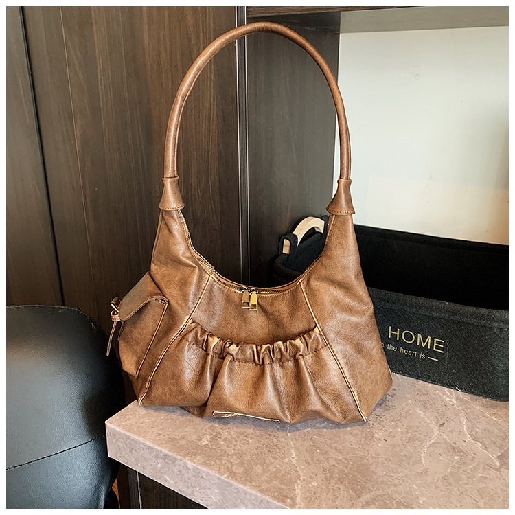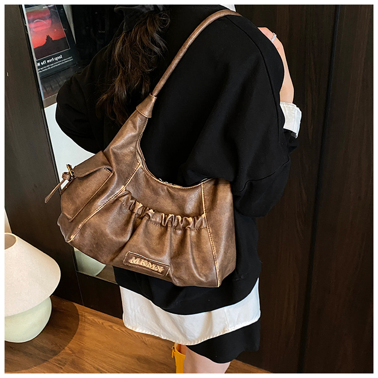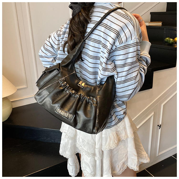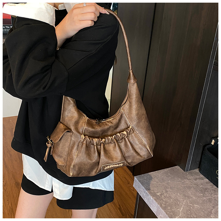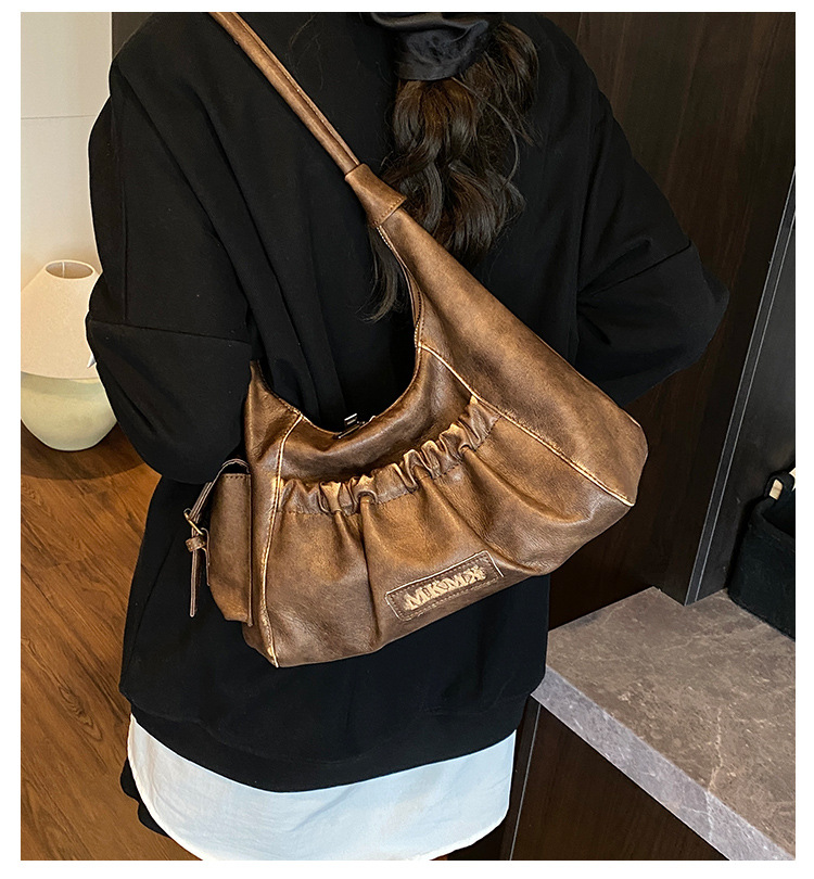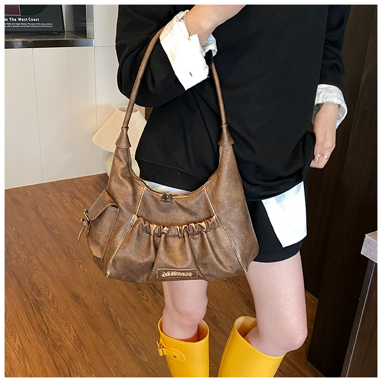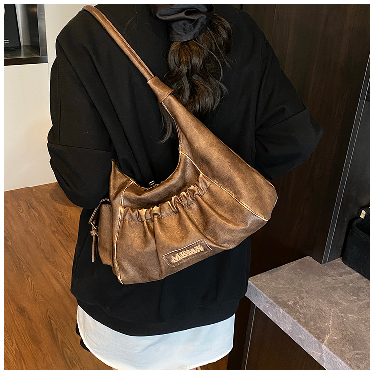 高級感のある小衆レトロなしわ餃子バッグ女性2025新型美ラード風脇下シングルショルダーバッグ