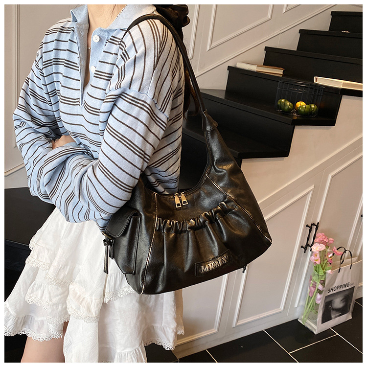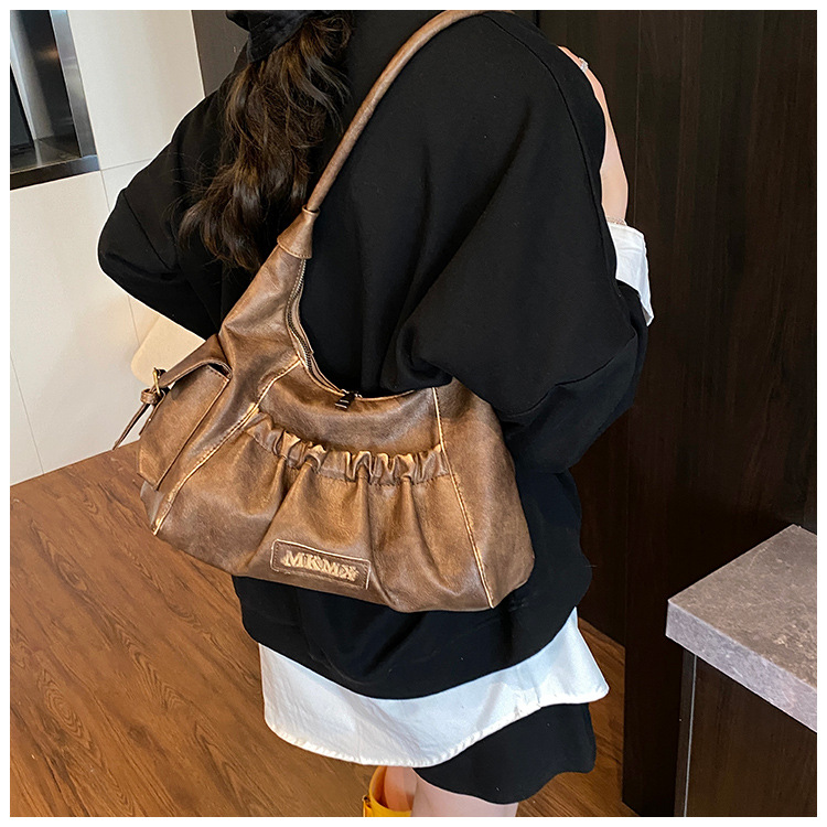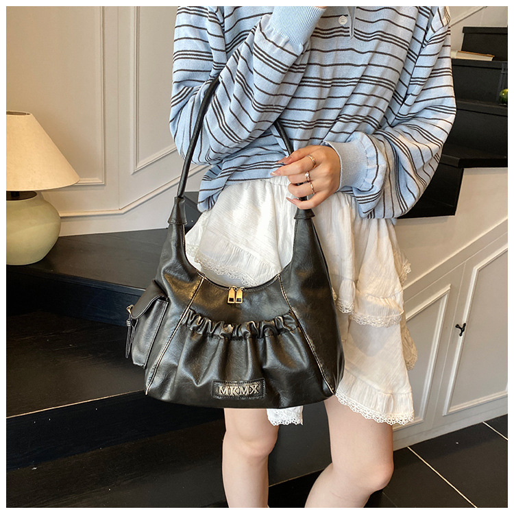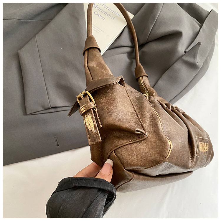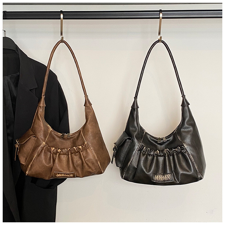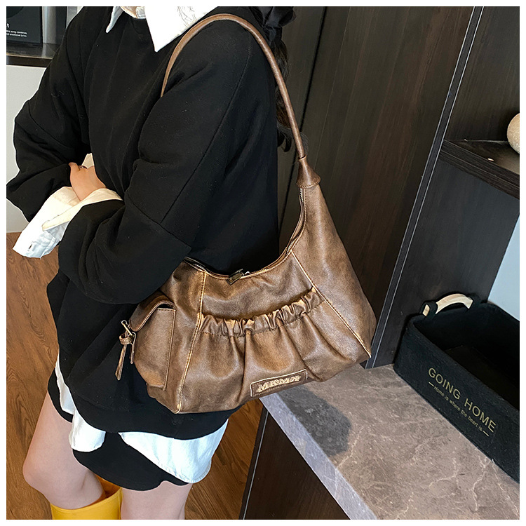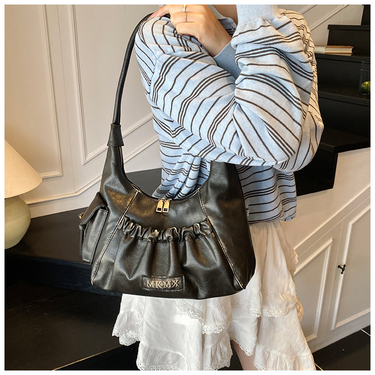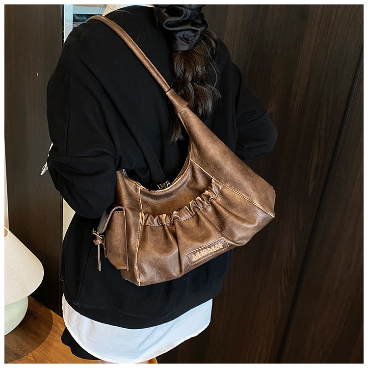 高級感のある小衆レトロなしわ餃子バッグ女性2025新型美ラード風脇下シングルショルダーバッグ