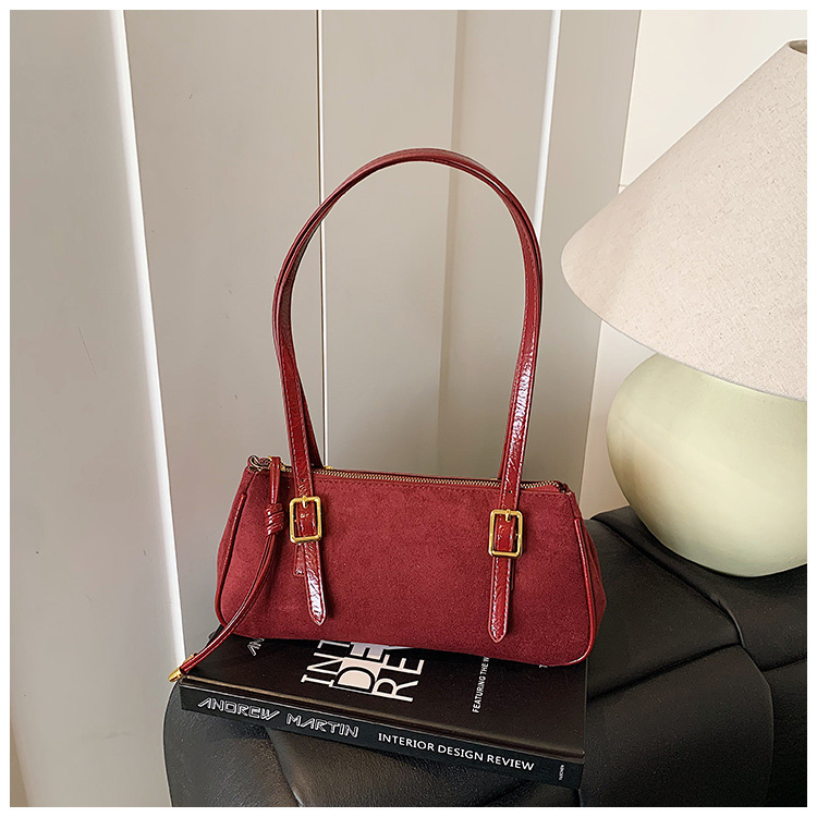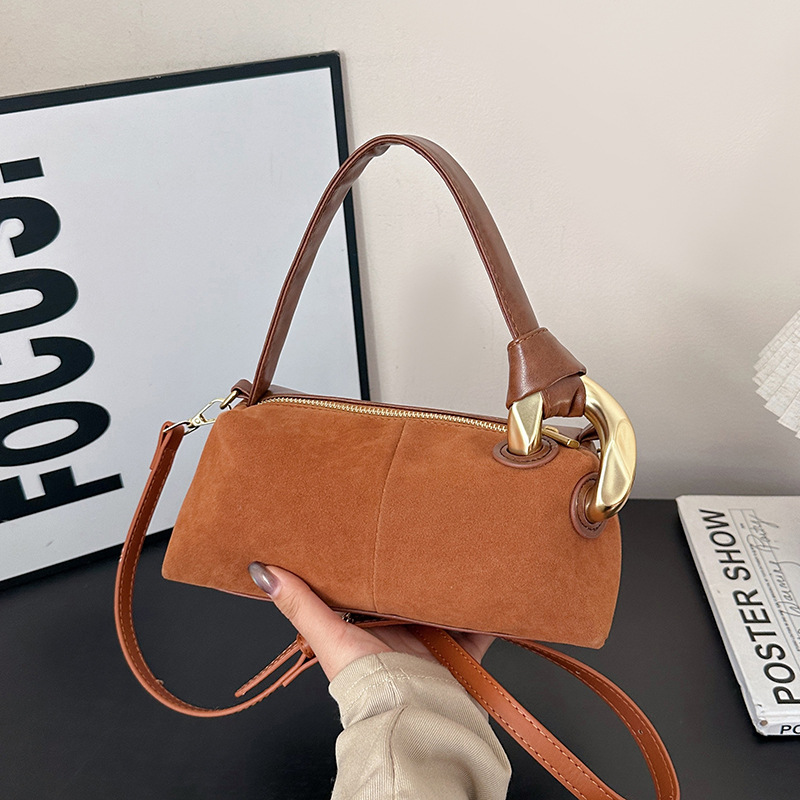 跨境潮时尚波士顿枕头包包女2025新款复古麂皮绒手拎包单肩斜挎包