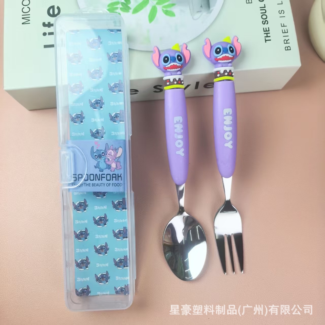 卡通可爱儿童餐具叉勺子套装 史迪仔蛋糕上班带饭软胶不锈钢叉子