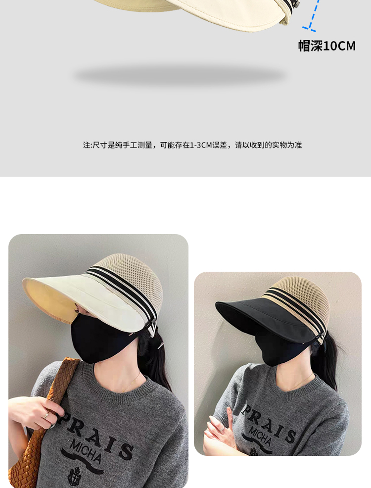 女性用春夏日焼け止め帽子、中空通気性ひさしキャップ、マスクを掛けることができ、アウトドア旅行、ビーチフィッシャーマンハット、サンハット