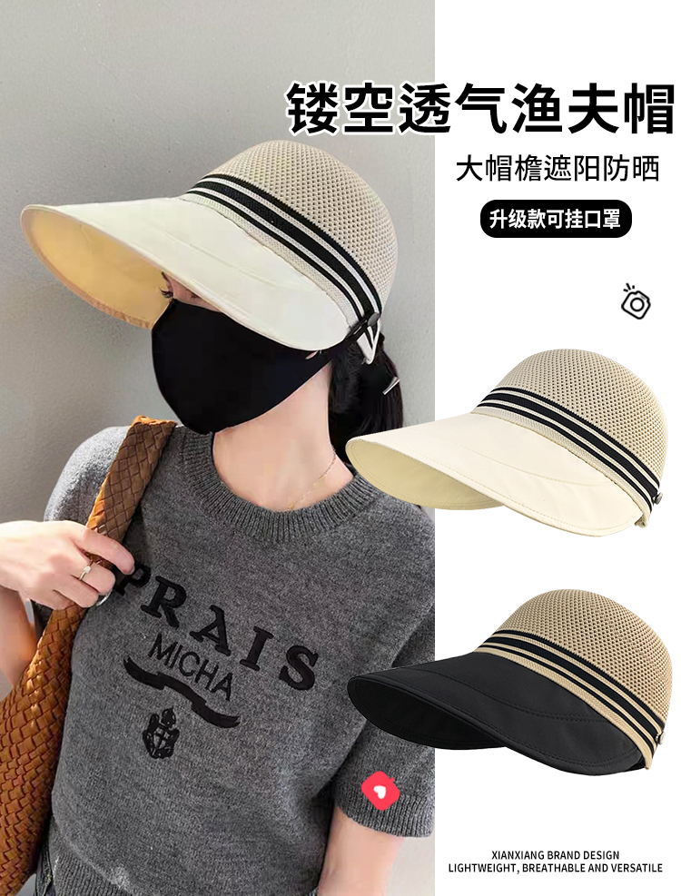 日焼け防止、中空デザイン、おしゃれ、2025年、通気性、日よけ、新作、顔を覆う、紫外線対策、夏用、フィッシャーマンハット、サンハット、キャップ
