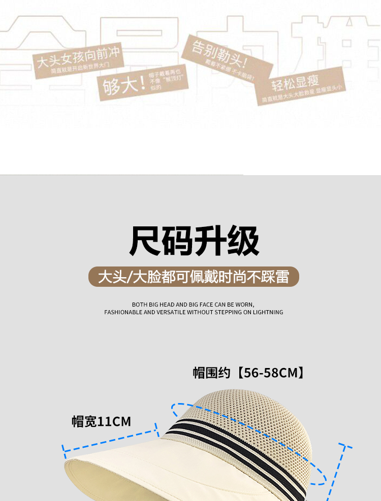 2025夏季新款遮阳帽子加大版显脸小百搭渔夫帽防晒防紫外线太阳帽
