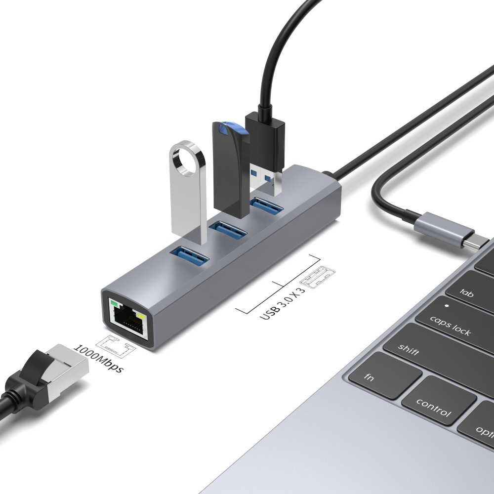 产品名称:铝合金USB3.0千兆网络适配器+3口3.0 usb hub