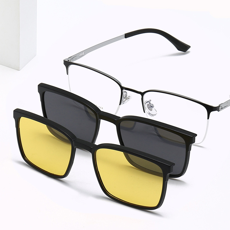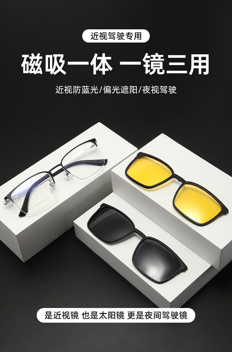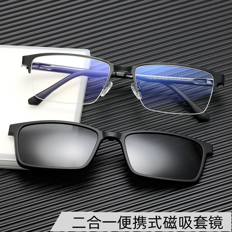 Tj2143男女一体型マグネットクリップサングラスファッションビジネス半枠メガネフレーム近視偏光カバーミラー