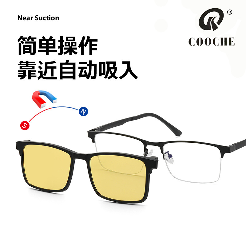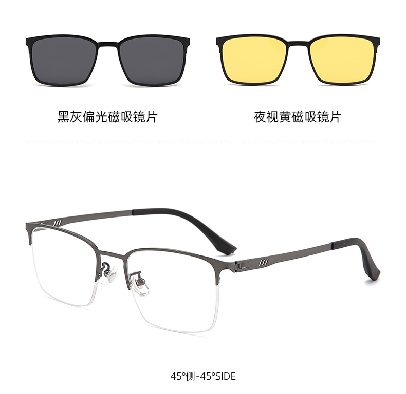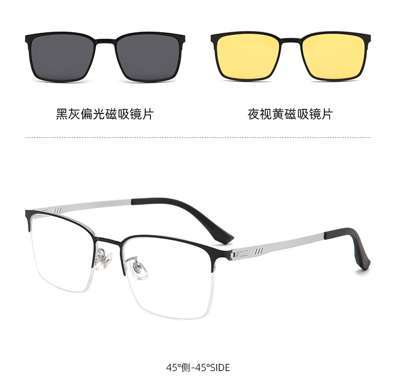 2199 メタル製ワンミラー、二重用途、磁気セット、サイクリング用スクエアハーフフレーム近視メンズビジネスハイエンド偏光メガネ
