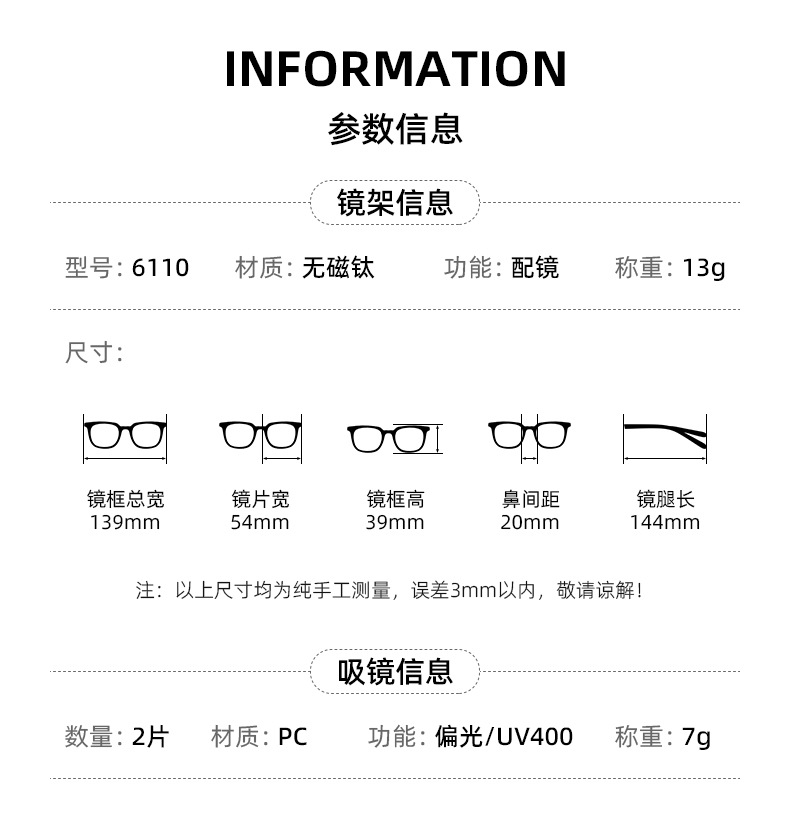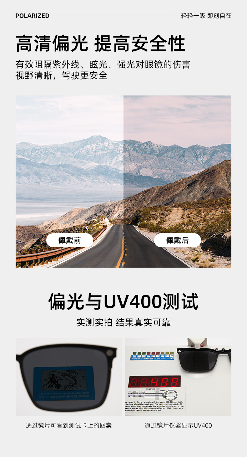 夏季超轻纯钛磁吸套镜半框三合一太阳镜BW6015T偏光墨镜夹片批发