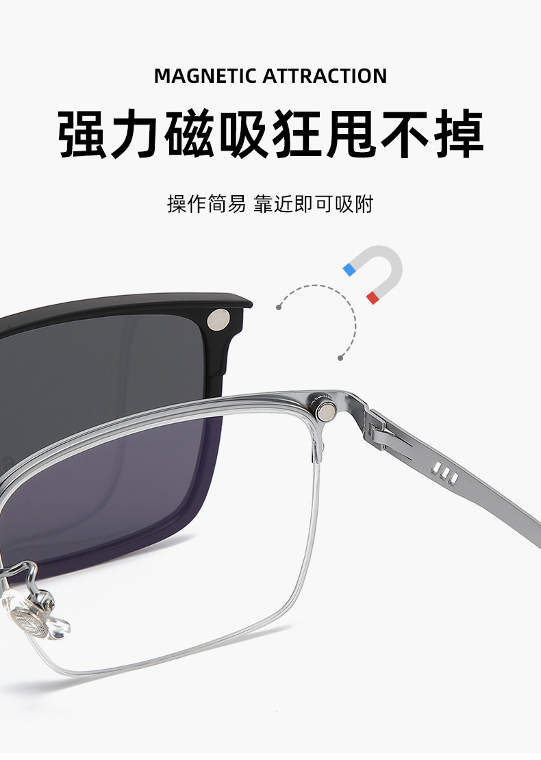 振音爆金ブロック磁気吸引近視理工男サングラスセット鏡三合一メガネフレームは度数Y9022を合わせることができる