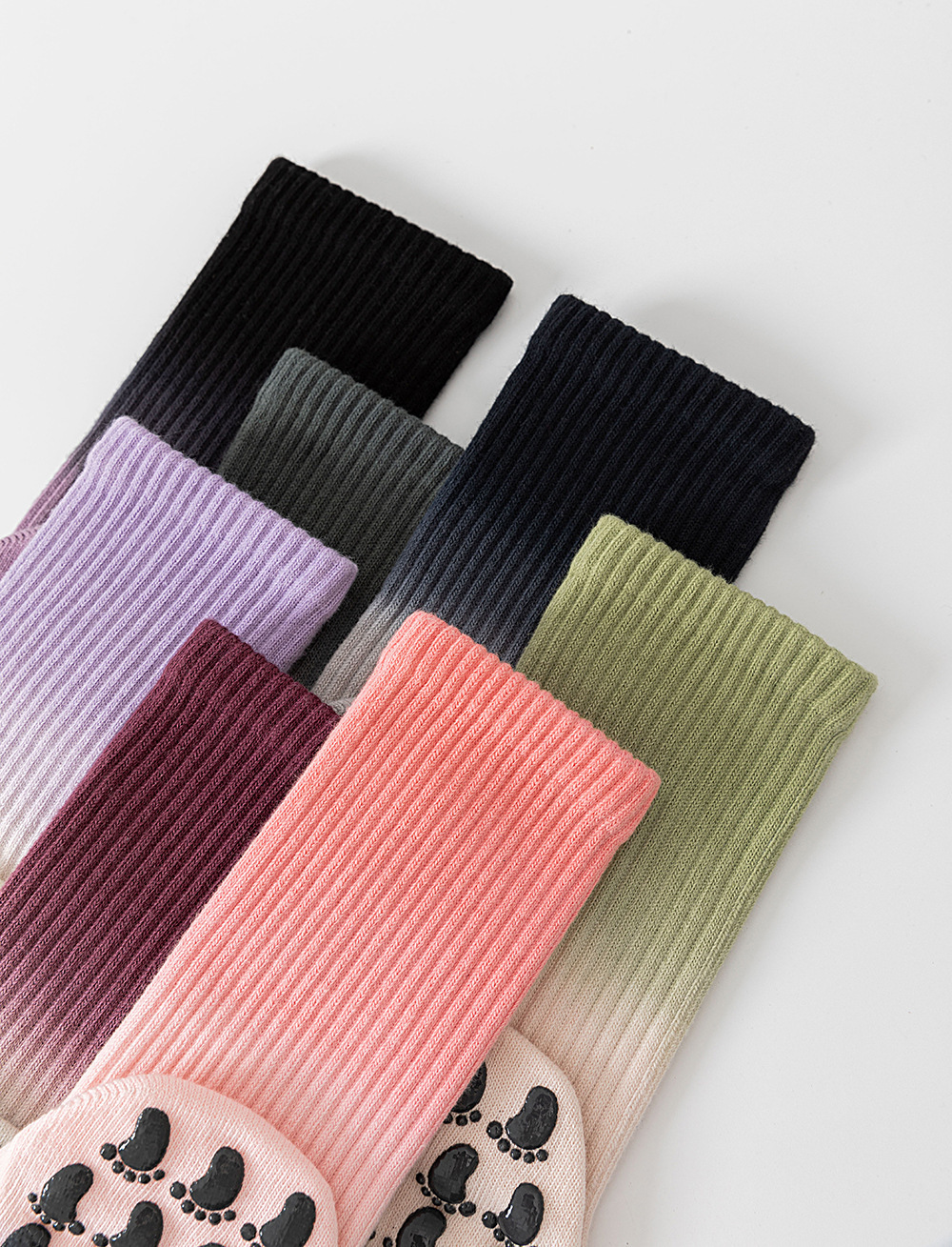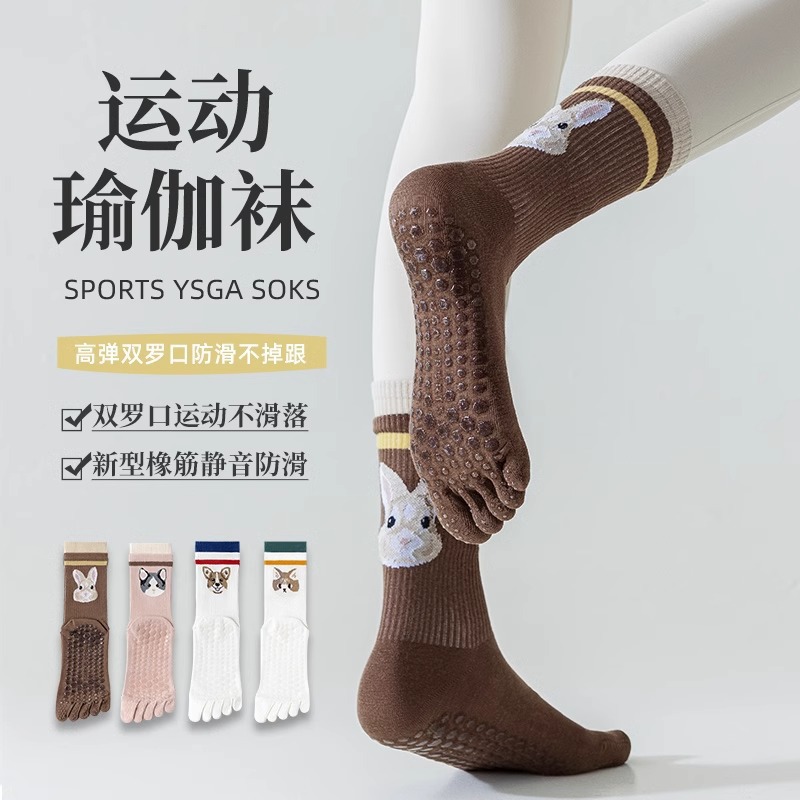 跨境五指袜子棉瑜伽女运动压力普拉提点胶小腿拼色