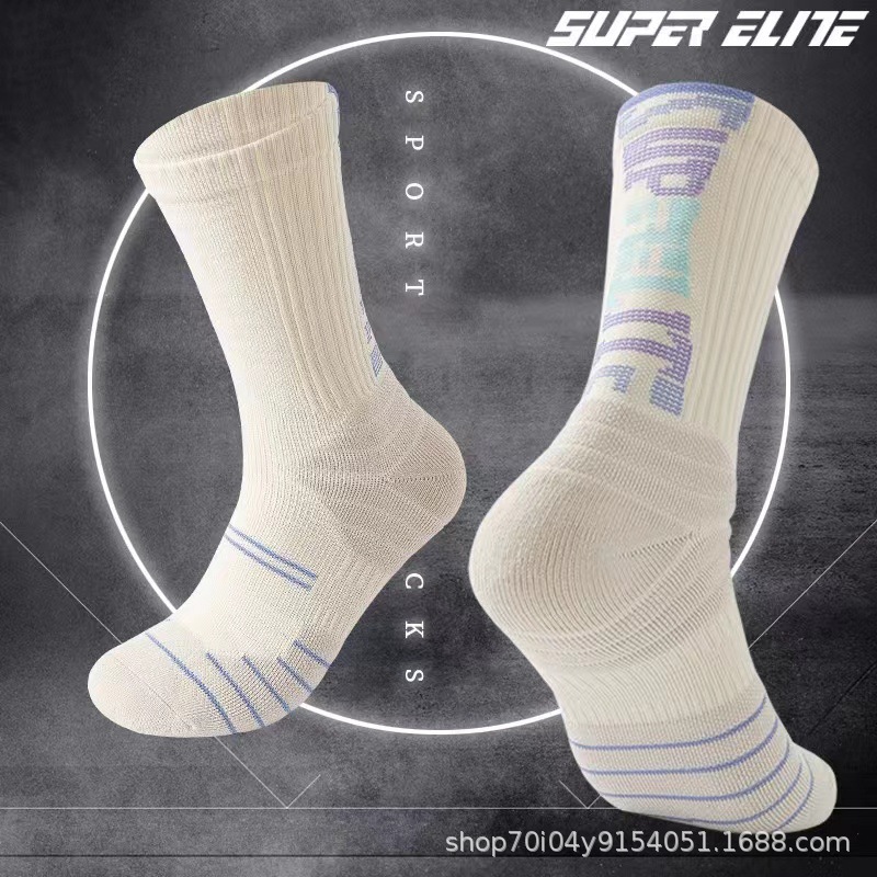 プロのバスケットボールの靴下の男性はタオルの底の中の長い筒の薄いタイプの通気性を厚くして汗を吸います。