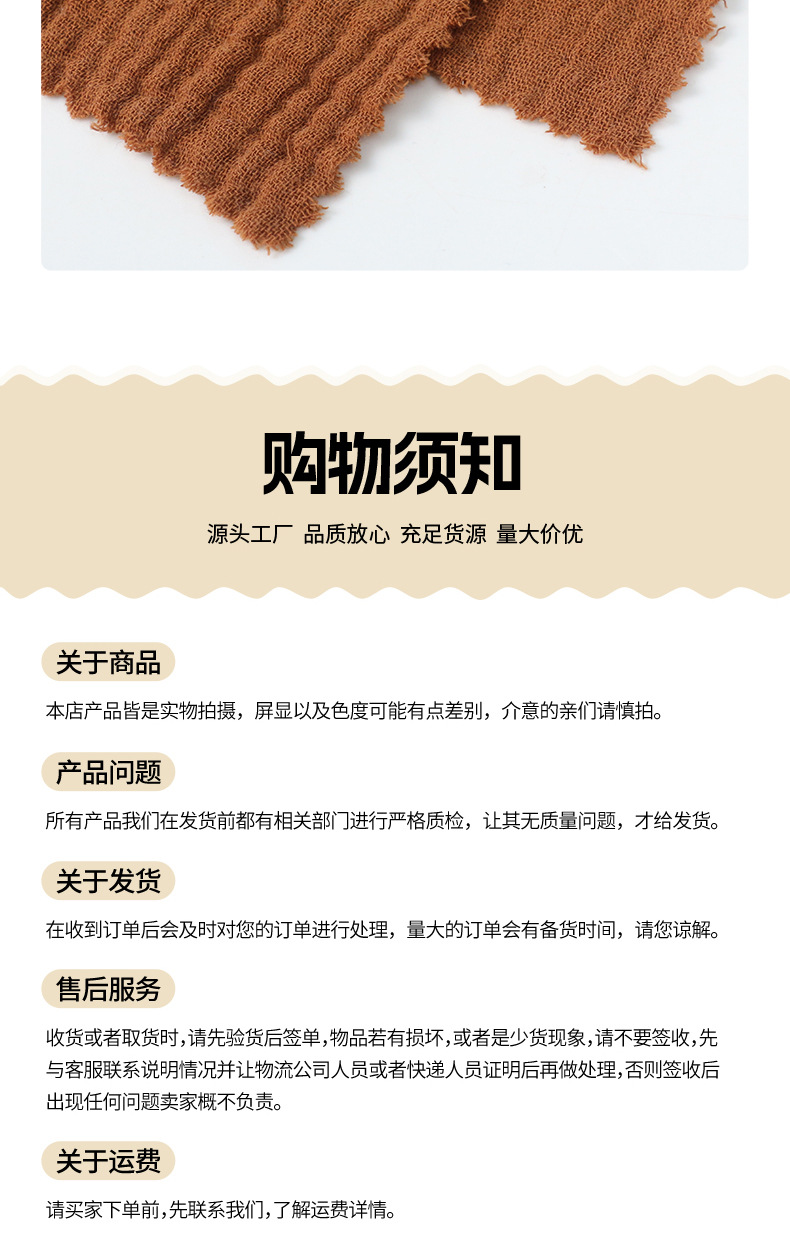 綿二重しわガーゼ生地純色綿タオル布団ベスト子供パジャマタオル綿布生地