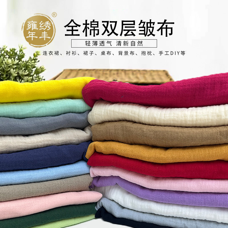 二層綿ガーゼ綿ガーゼテクスチャープリーツ夏無地しわ生地肌に優しいシャツドレス衣類生地