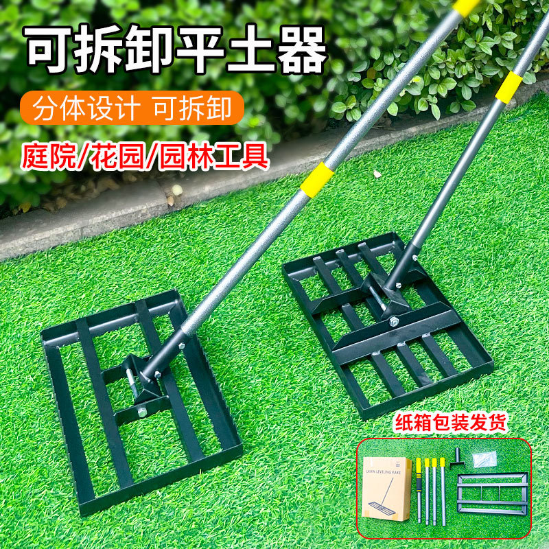 亚马逊跨境新款热销庭院草坪平整耙不锈钢草坪平整器平地耙农用耙
