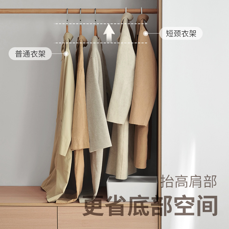 回転式ショートネックハンガー、ネック縮小、省スペース、家庭用吊り下げワードローブ、シームレス、肩の角が滑りにくい、背の低い衣類乾燥用サポート