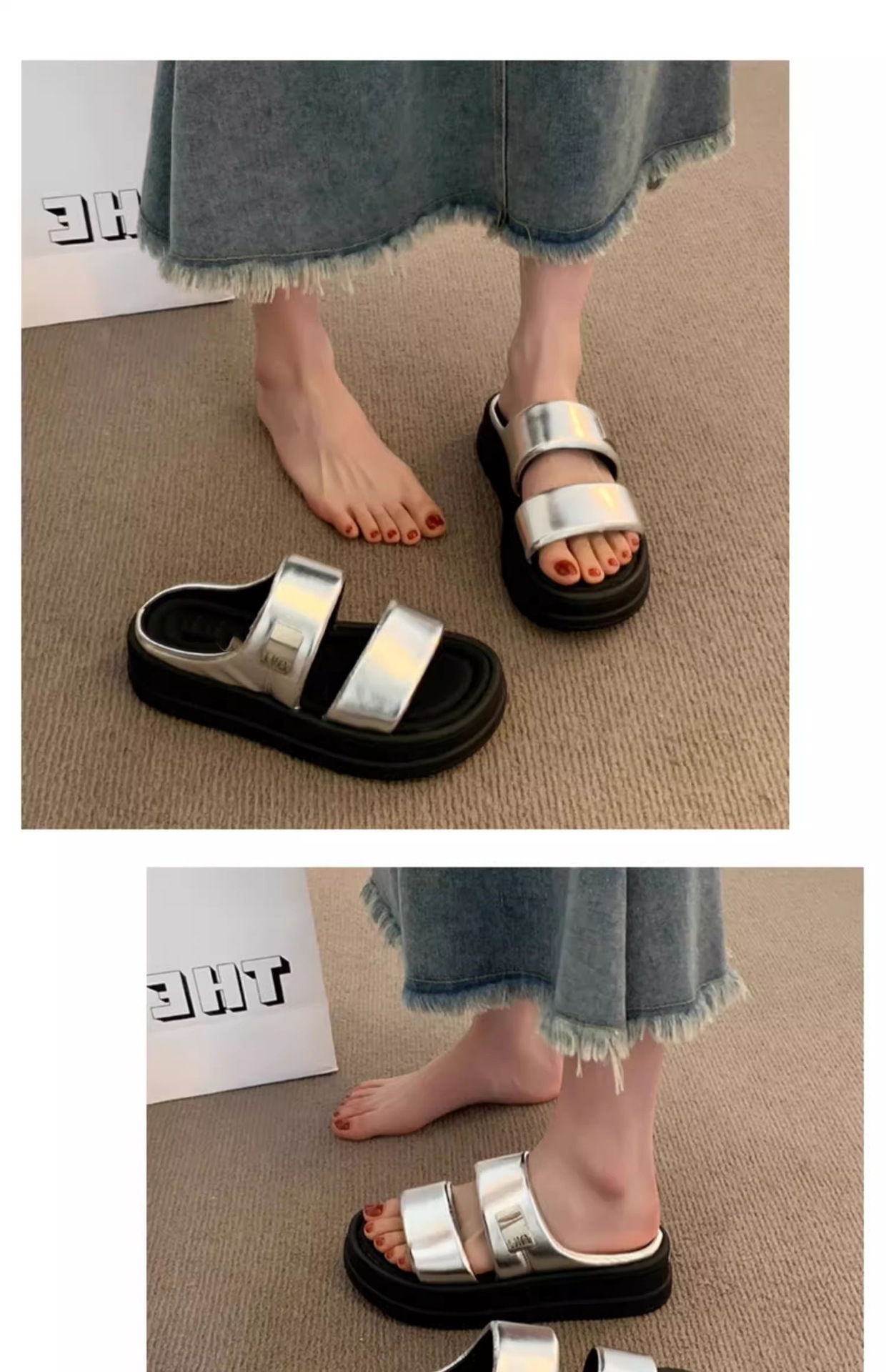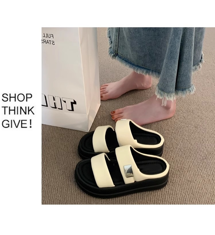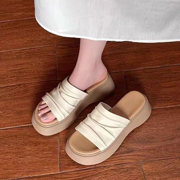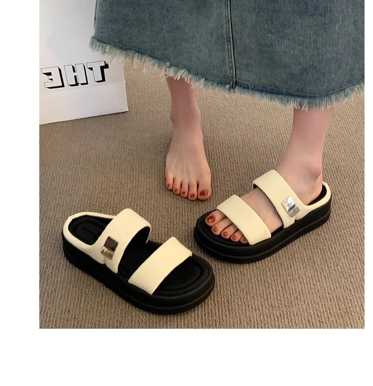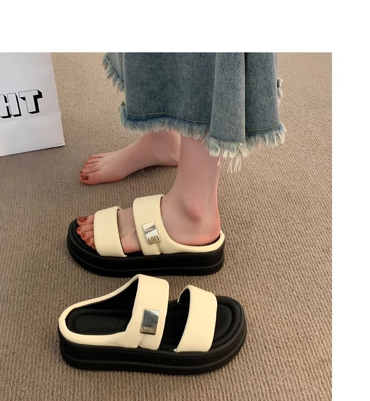 ネットセレブレトロ厚底スリッパ女性用 2025 夏の新しいアウターウェアファッショナブルで多用途なビーチサンダル女性用