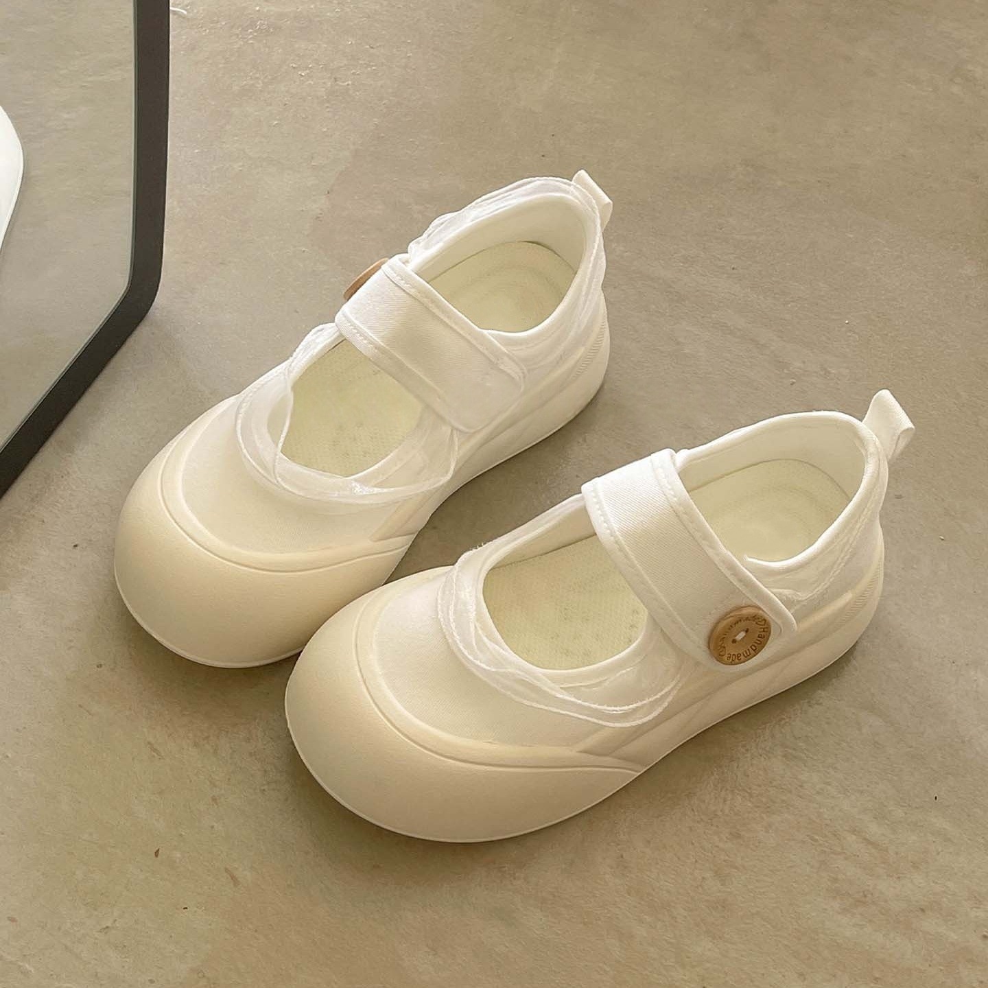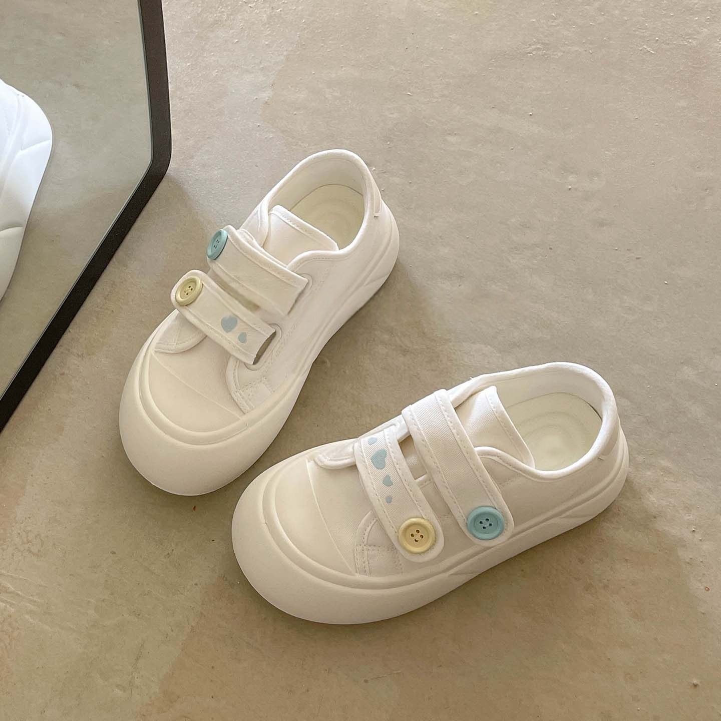 蕾丝小白鞋女夏季2025新款魔术贴帆布鞋女学生厚底板鞋玛丽珍女鞋