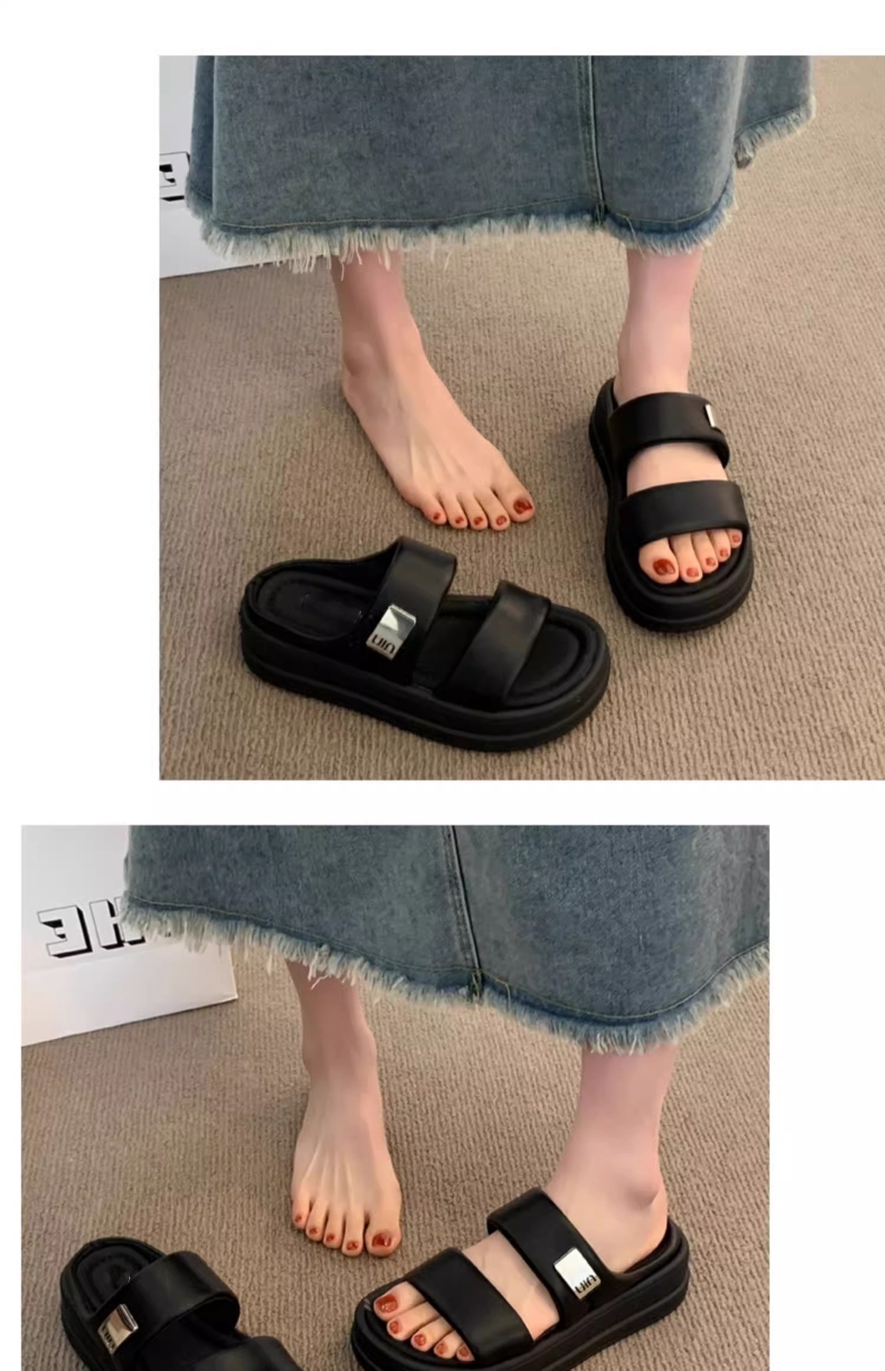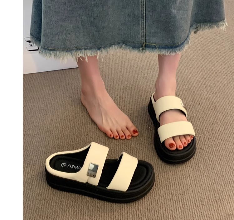 女性の夏のアウターウェア用スリッパ 2025 新しいスタイルの厚底サンダル、スカート付き、カジュアルビーチシューズ