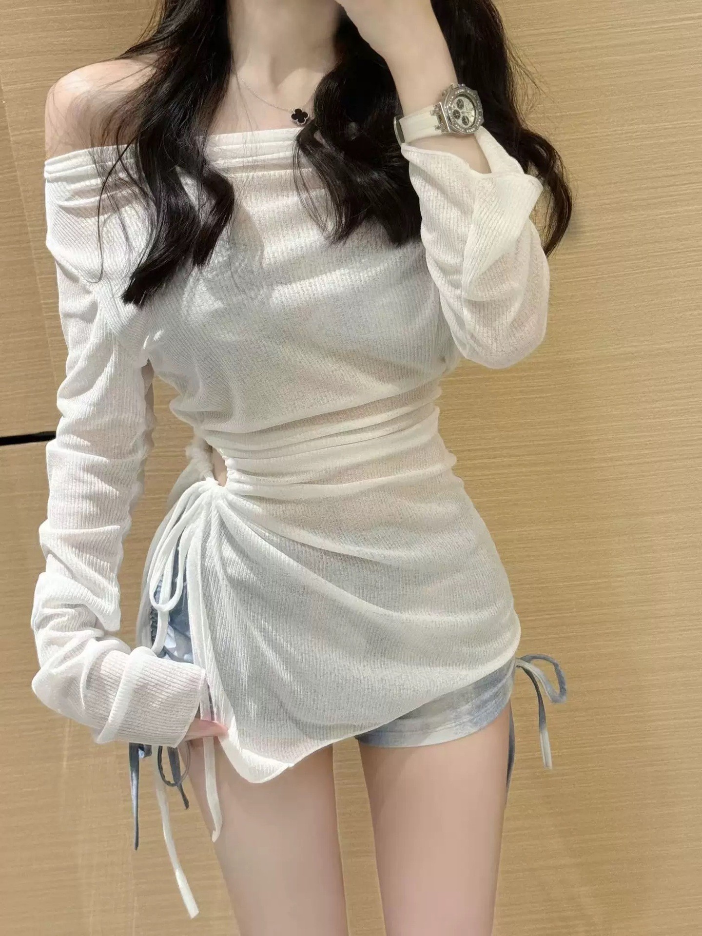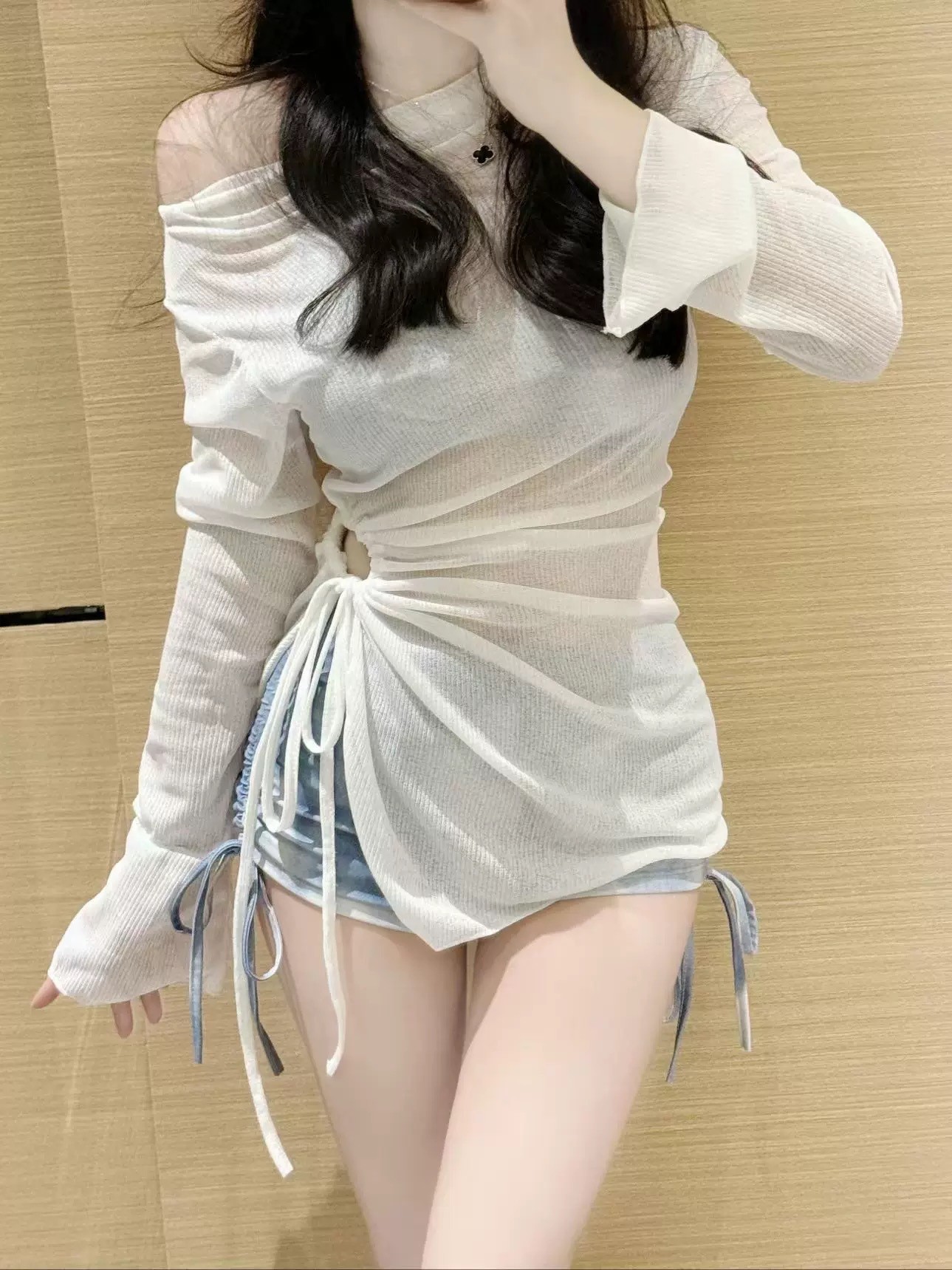 2025年新作ワンショルダースリム長袖ブラウスピュアデューティ温泉リゾートスプリット水着レディースビキニ3点セット