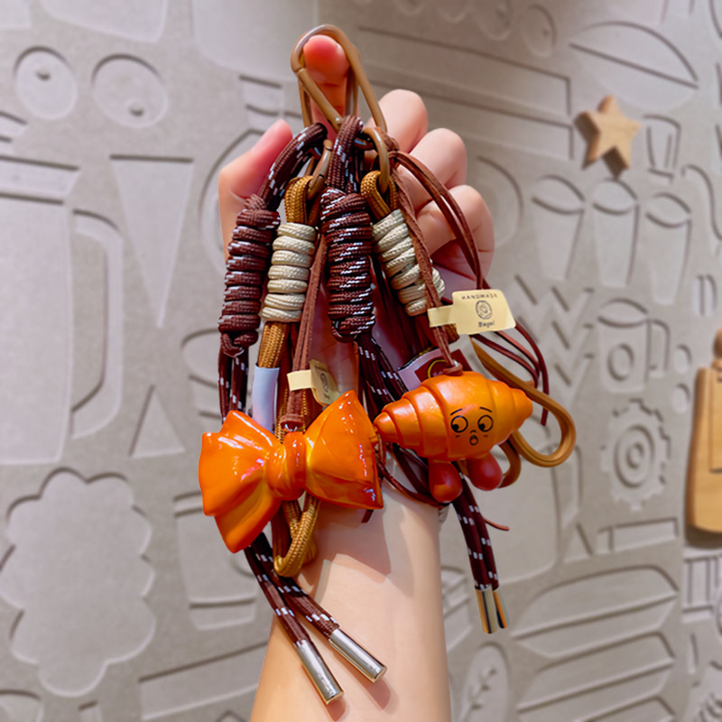 创意miu系可颂面包手绳钥匙扣挂件可爱情侣包包钥匙链挂饰小礼品