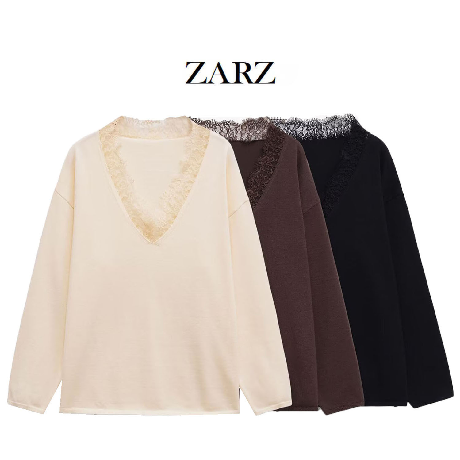 ZARZ 自制 欧美风 新款女装 洋气款 羊毛混纺蕾丝针织衫5755125