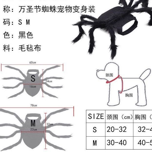 Douyinと同じスタイルの大きなクモの犬服、怖い怖いパロディーペットコート、猫と小型犬のcosコスチューム