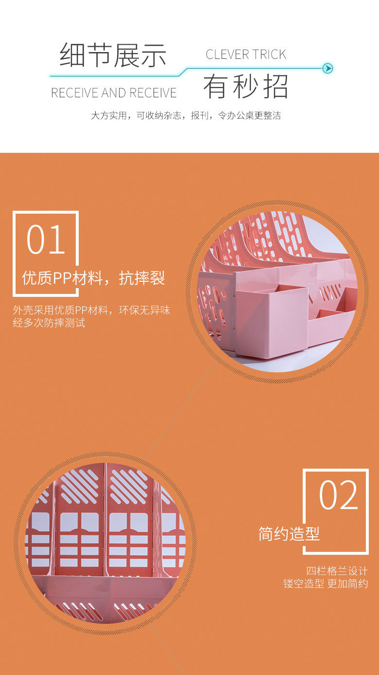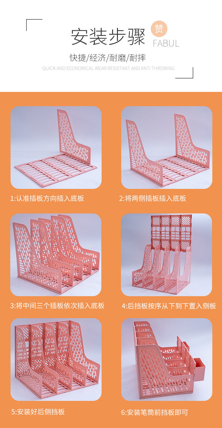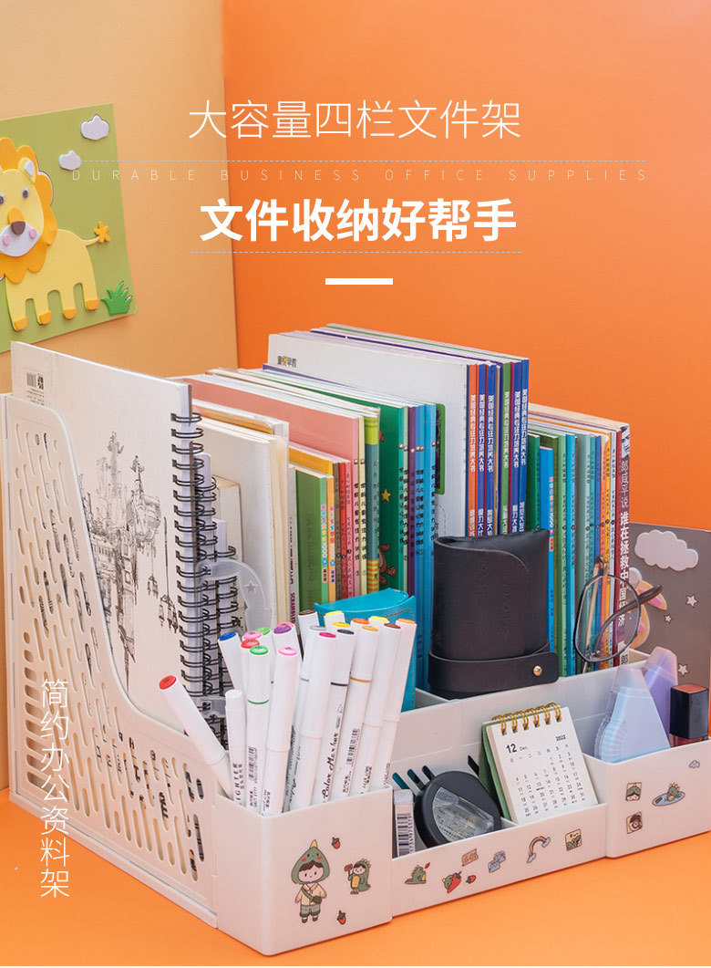 跨境加厚文件架文件框收纳盒资料架桌面文件栏办公用品书立架四联