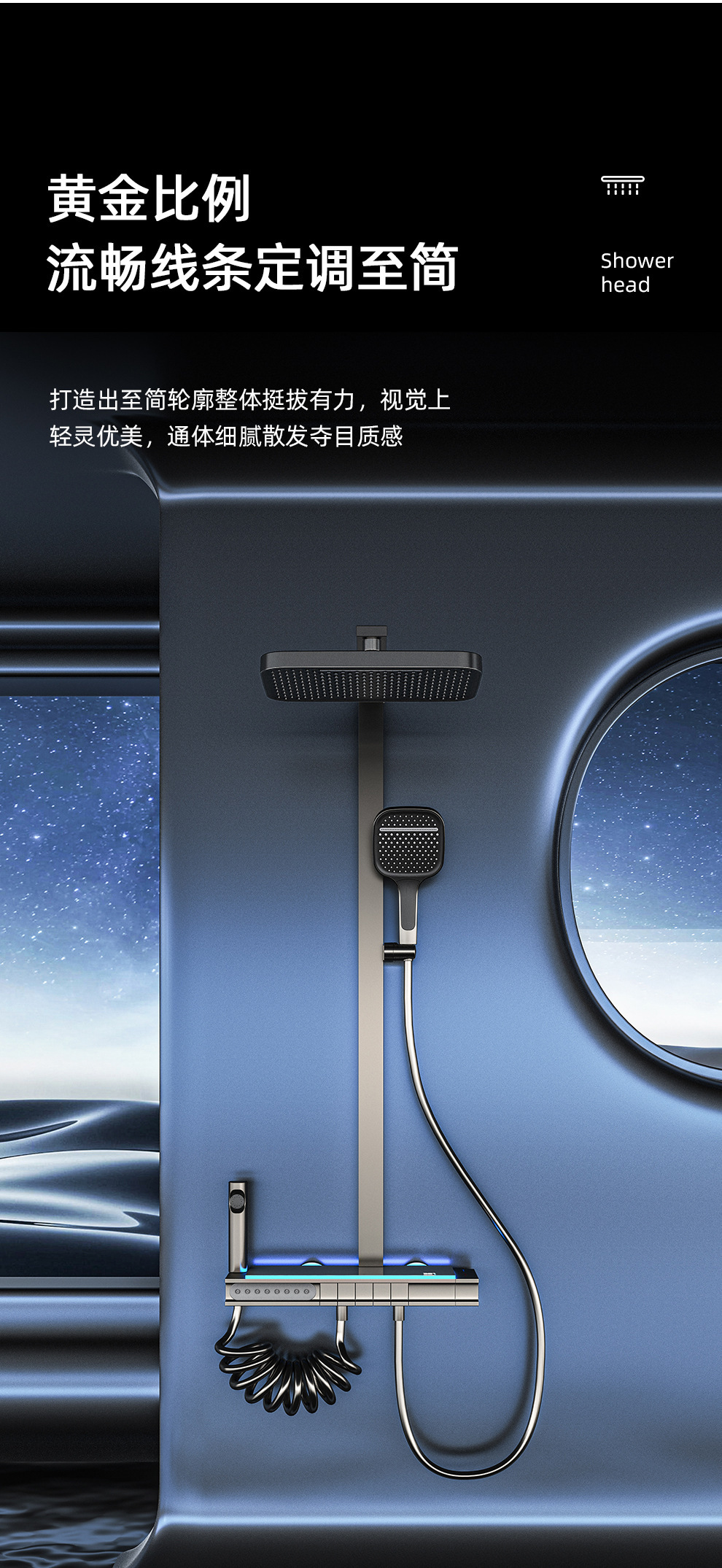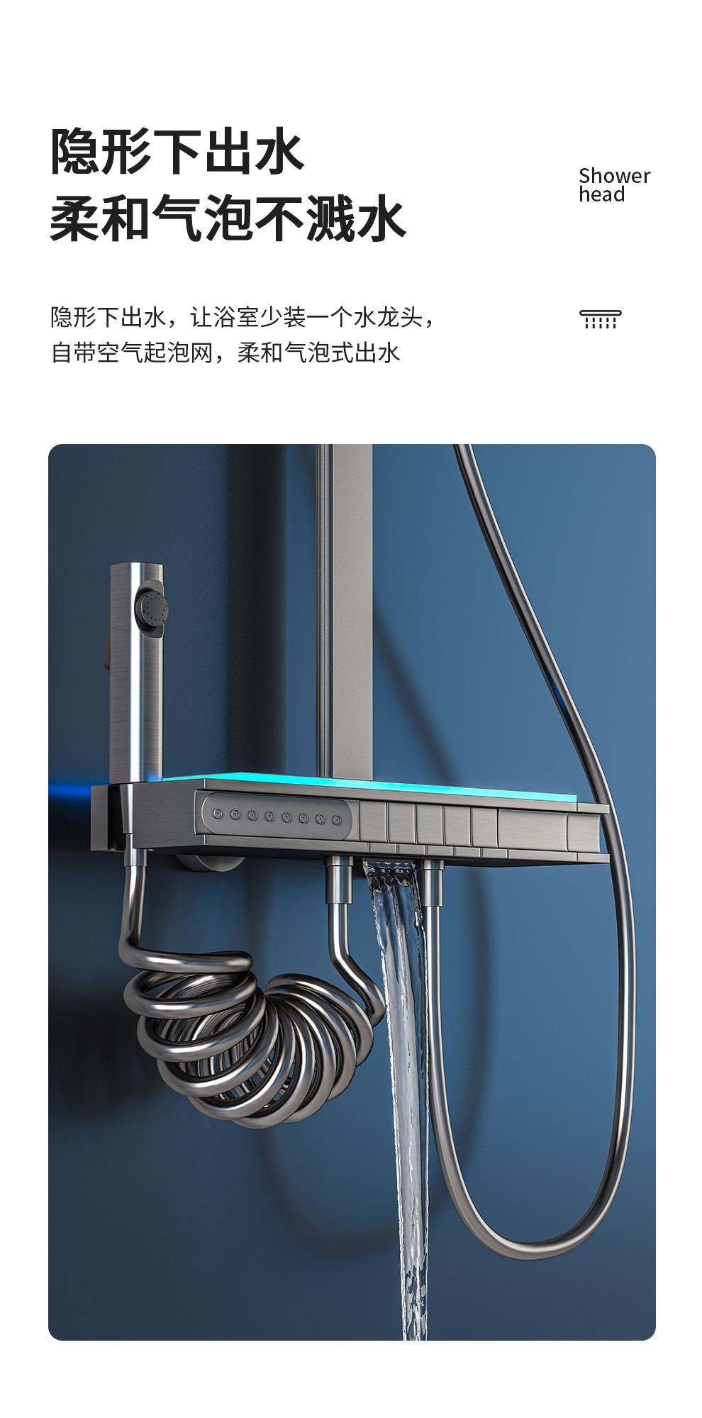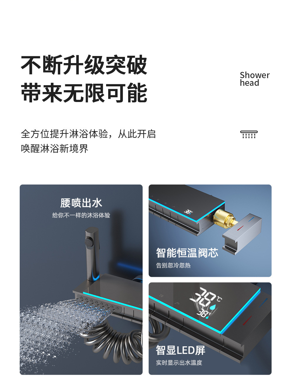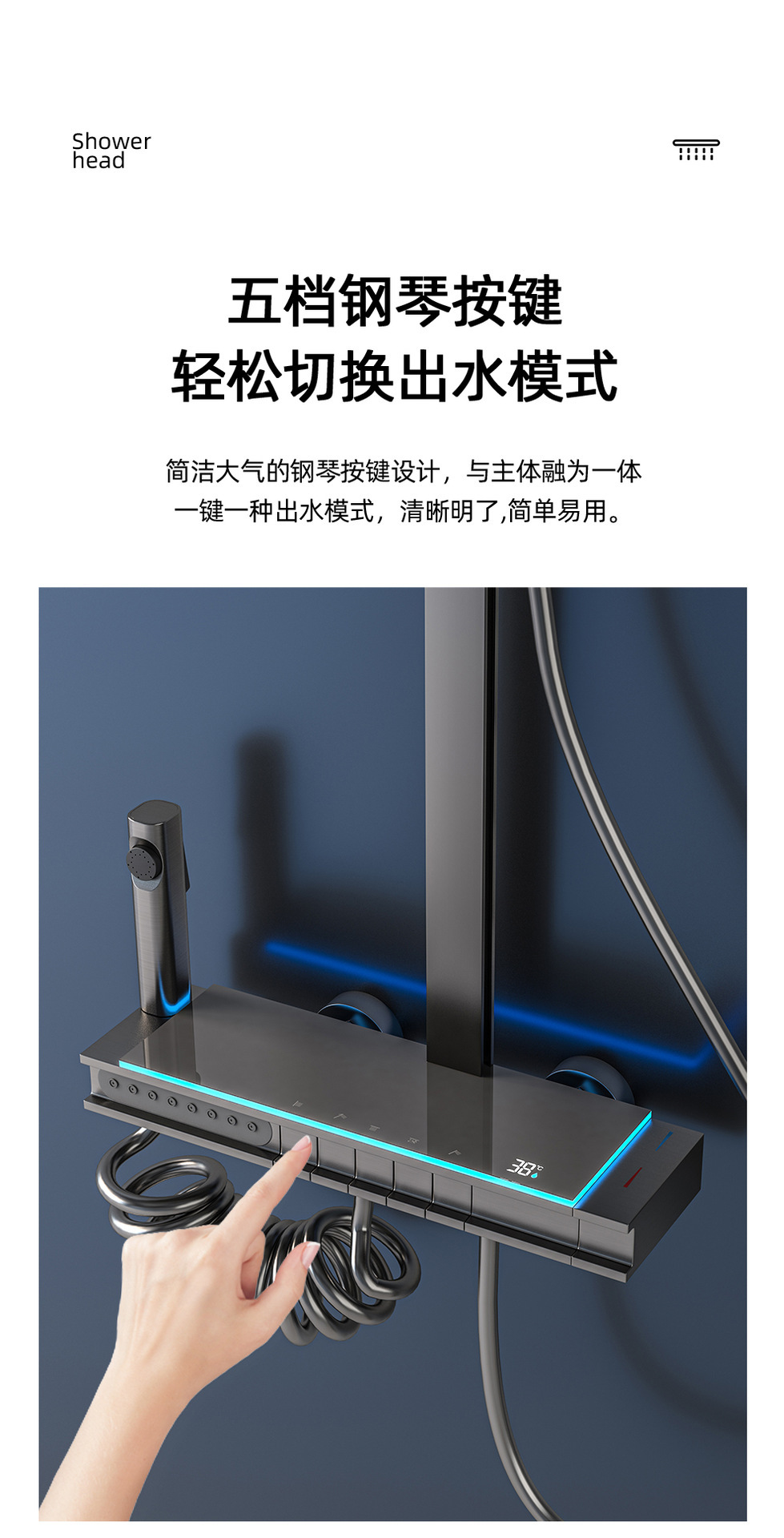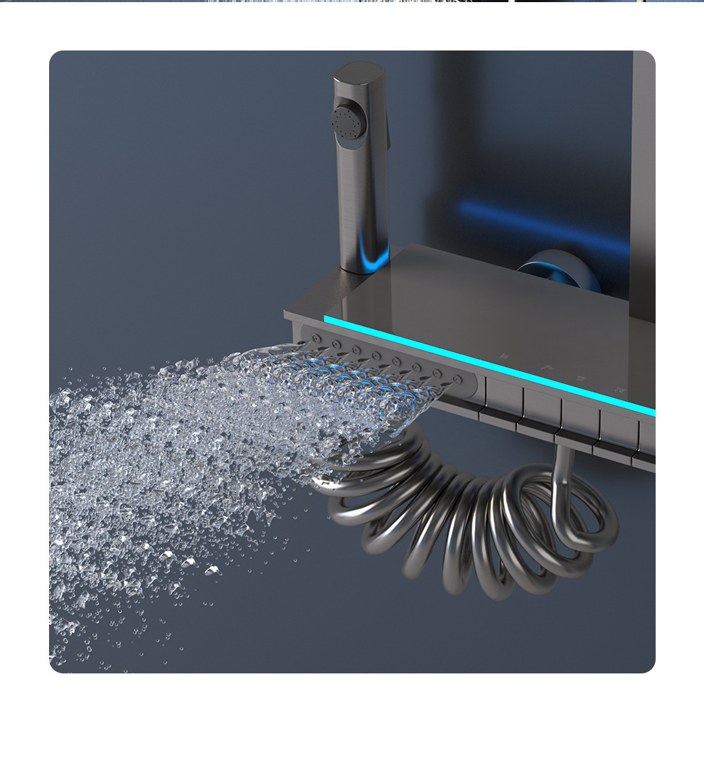 九牧王純正品質浴室シャワー恒温シャワーセットガンメタルグレー高級雰囲気照明付き多機能