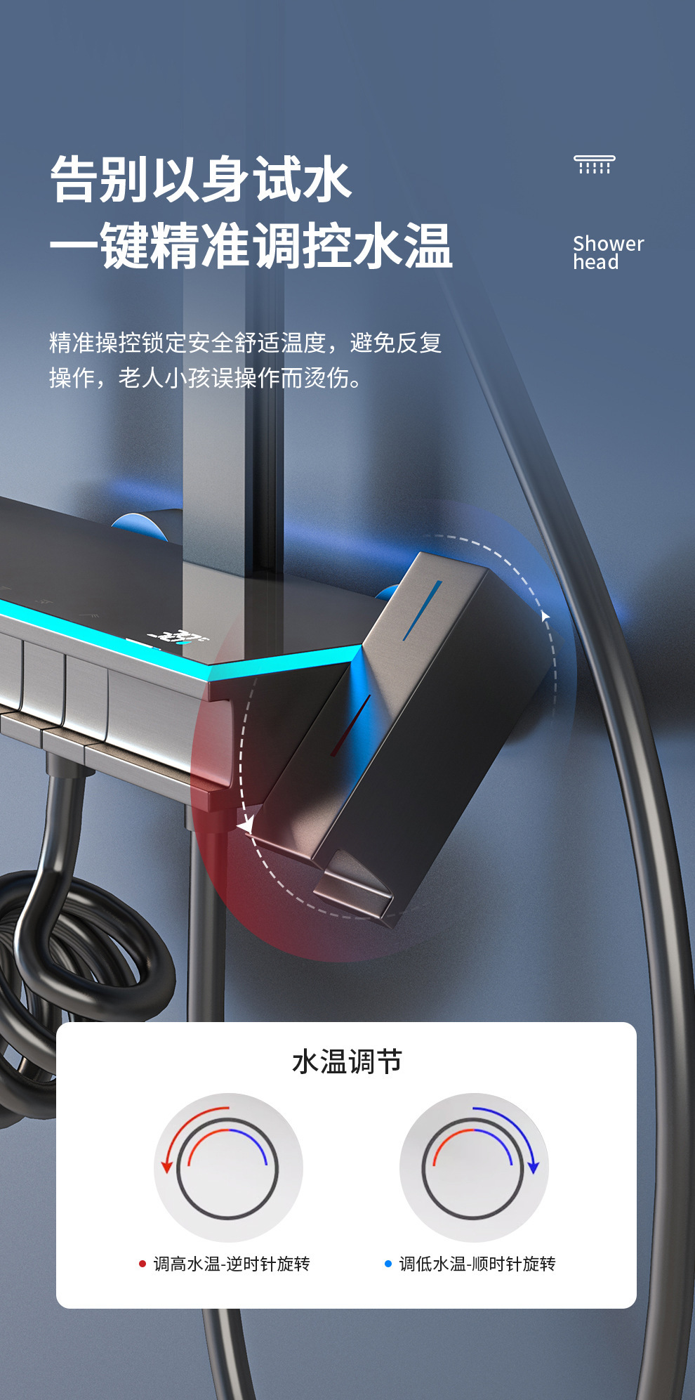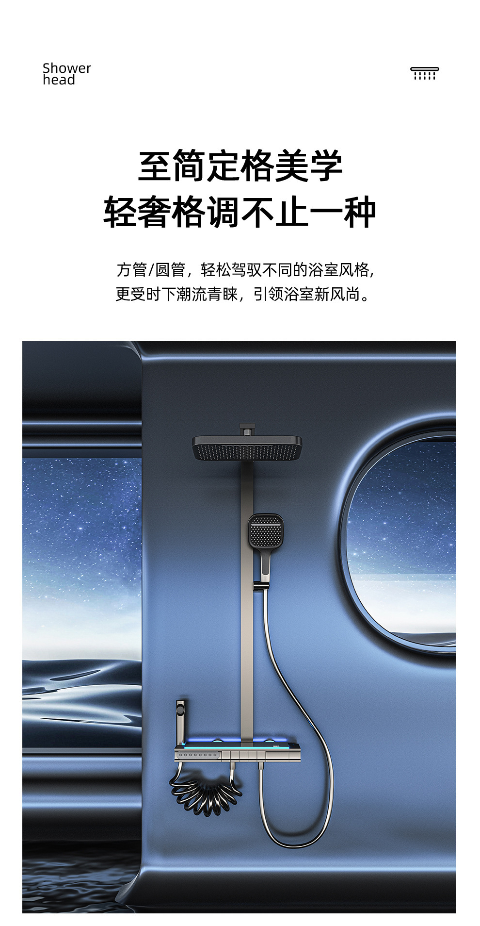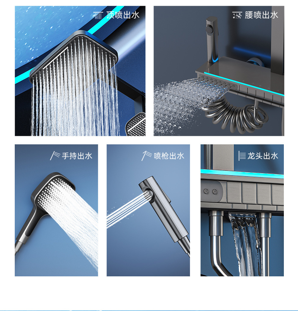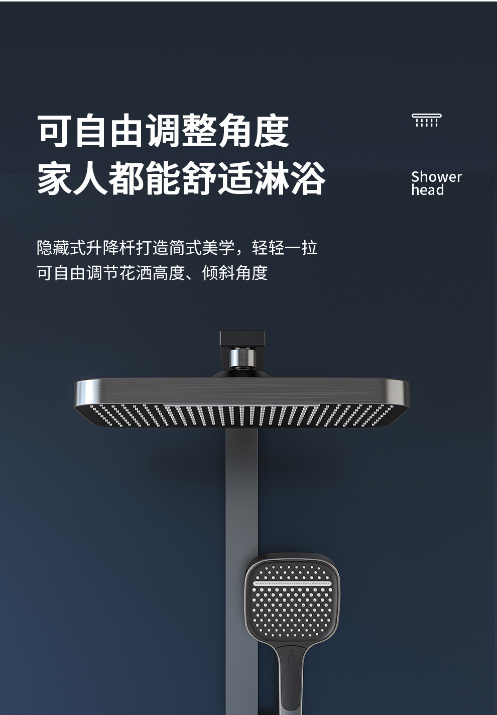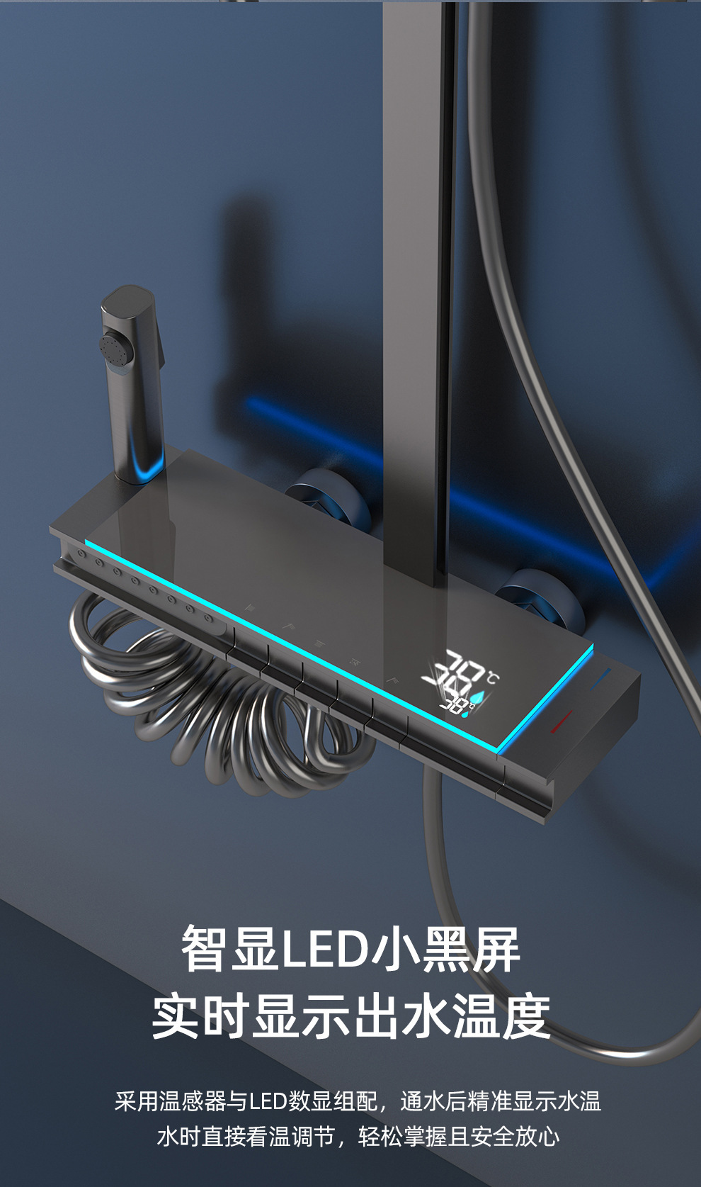 九牧王純正品質浴室シャワー恒温シャワーセットガンメタルグレー高級雰囲気照明付き多機能