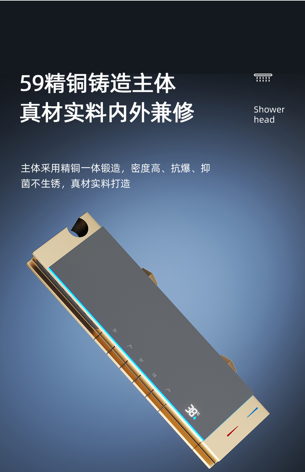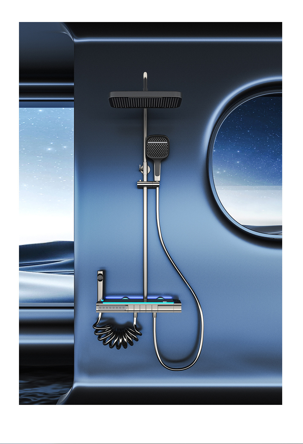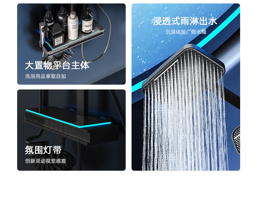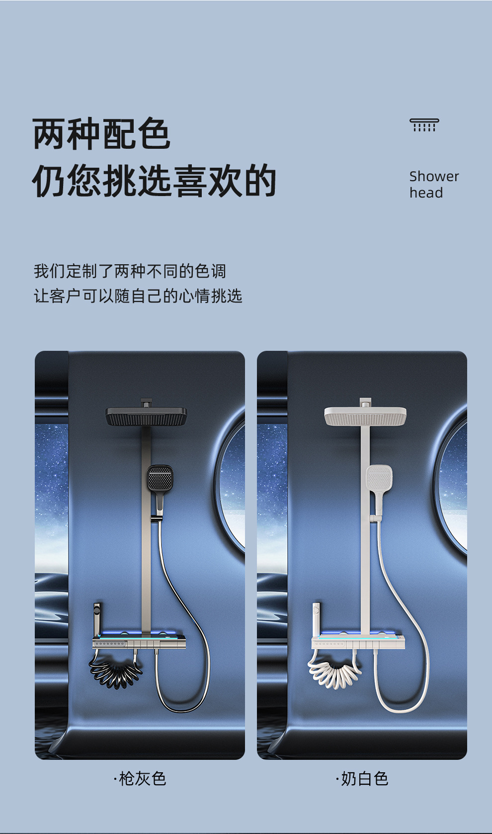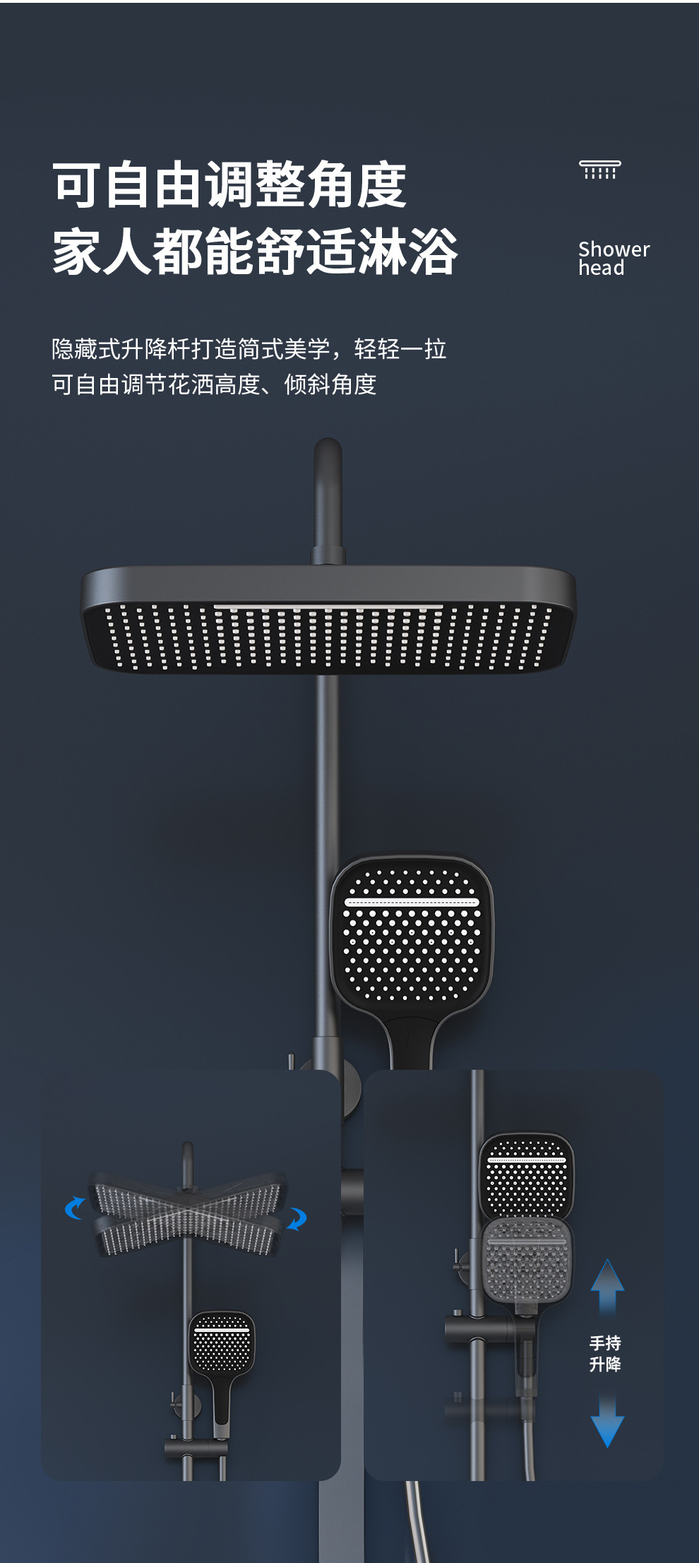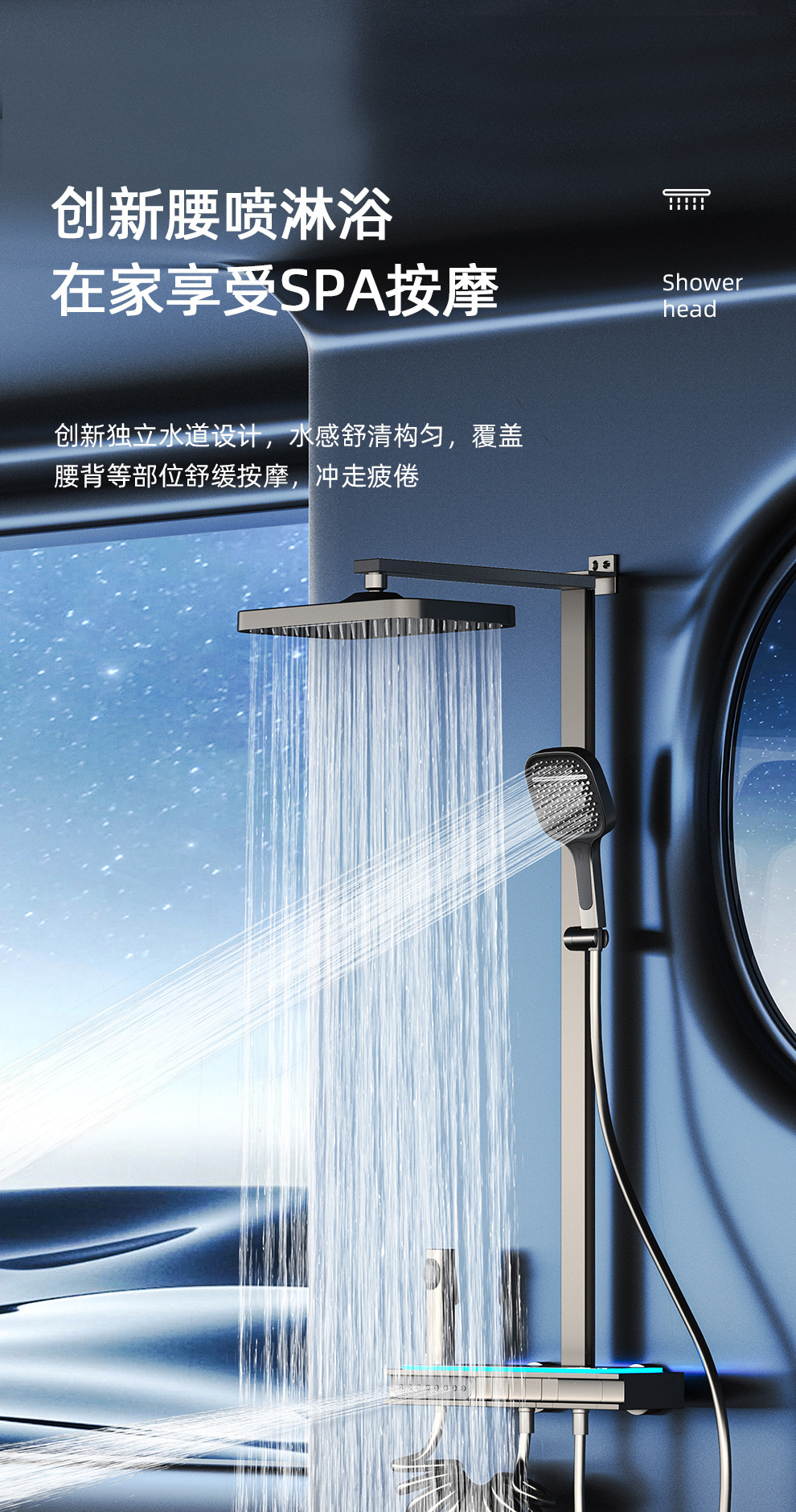 九牧王純正品質浴室シャワー恒温シャワーセットガンメタルグレー高級雰囲気照明付き多機能