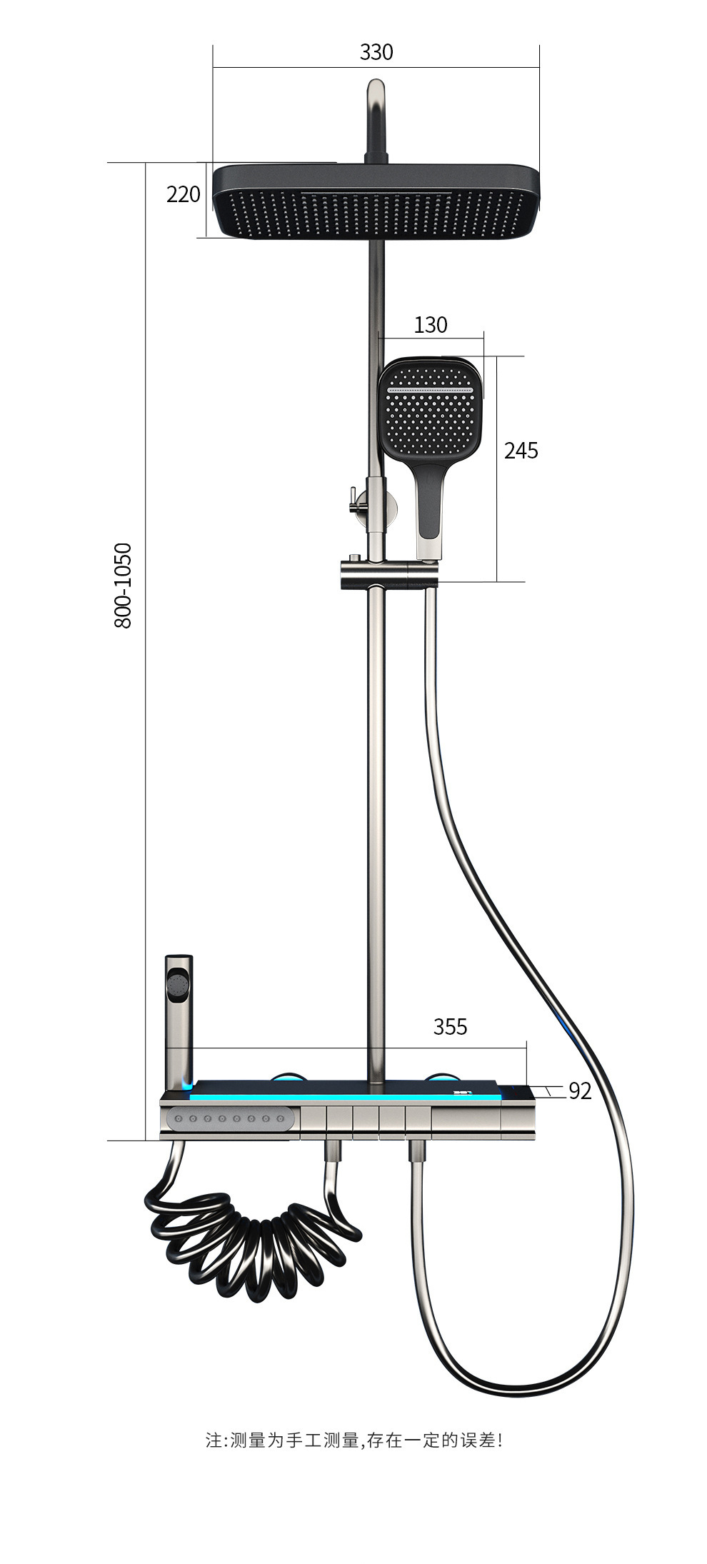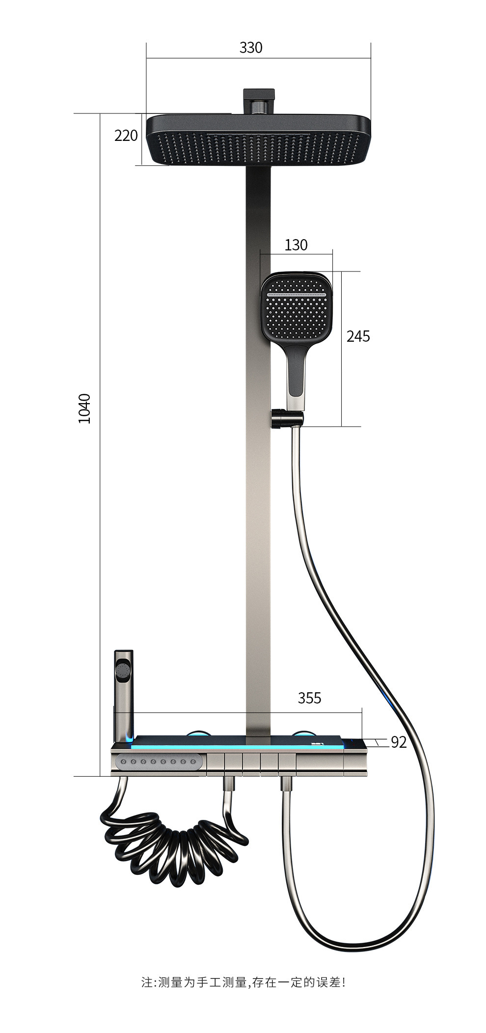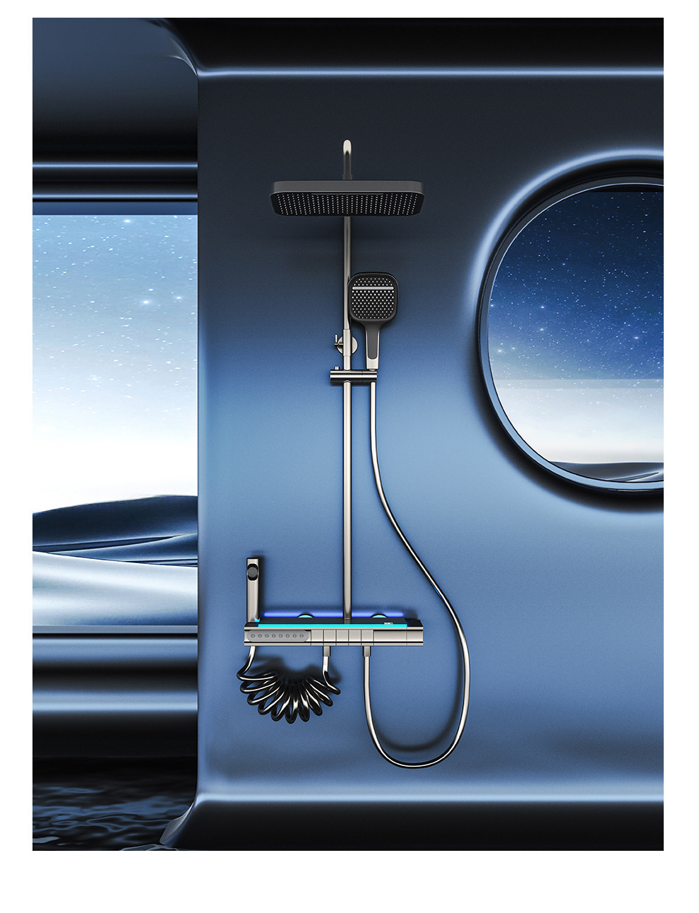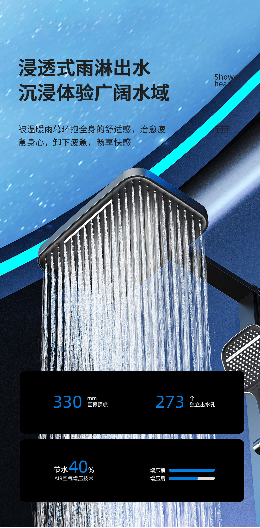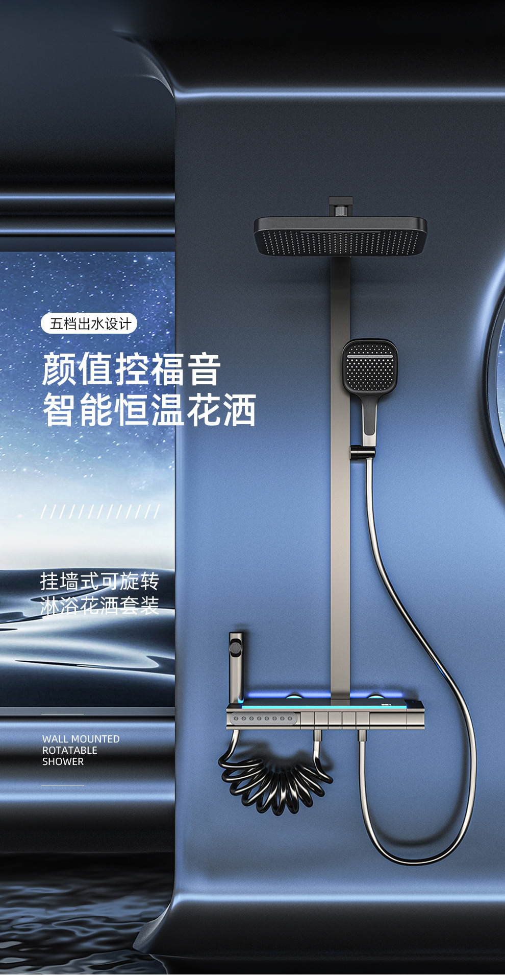 九牧王純正品質浴室シャワー恒温シャワーセットガンメタルグレー高級雰囲気照明付き多機能