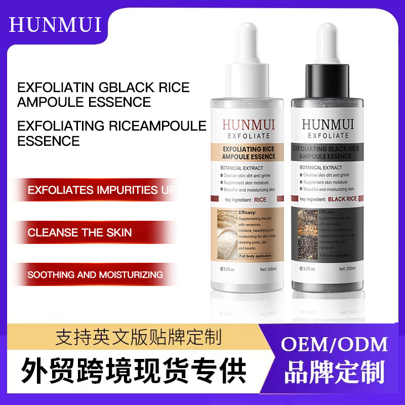 爆款跨境英文款大米去角质安瓶精华黑米软化去死皮精华液外贸批发