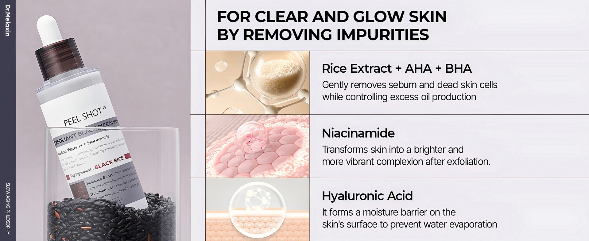 国境を越えた人気のDr.Melaxin公式ピールショット白米と黒米のピーリングコンビネーションセット
