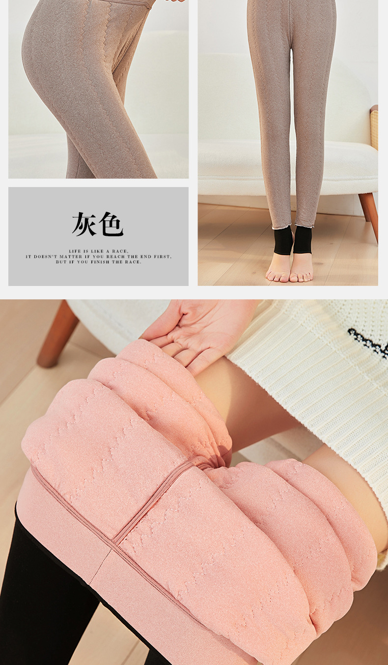 2024 シープスキンパンツ縦ストライプ秋と冬厚いレギンス女性のハイウエスト綿縦ストライププラスベルベットレギンス足踏みズボン