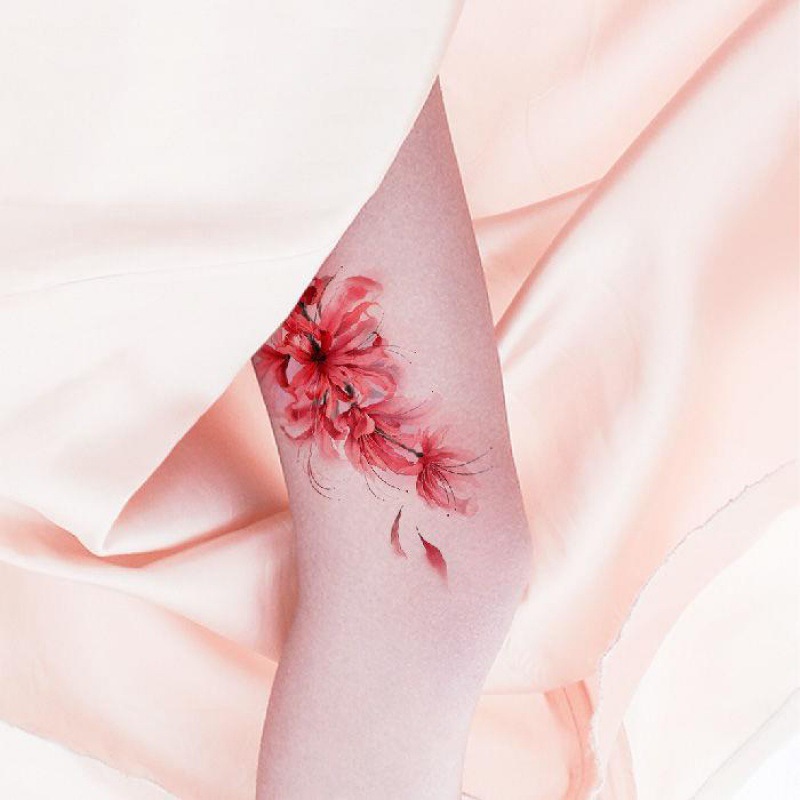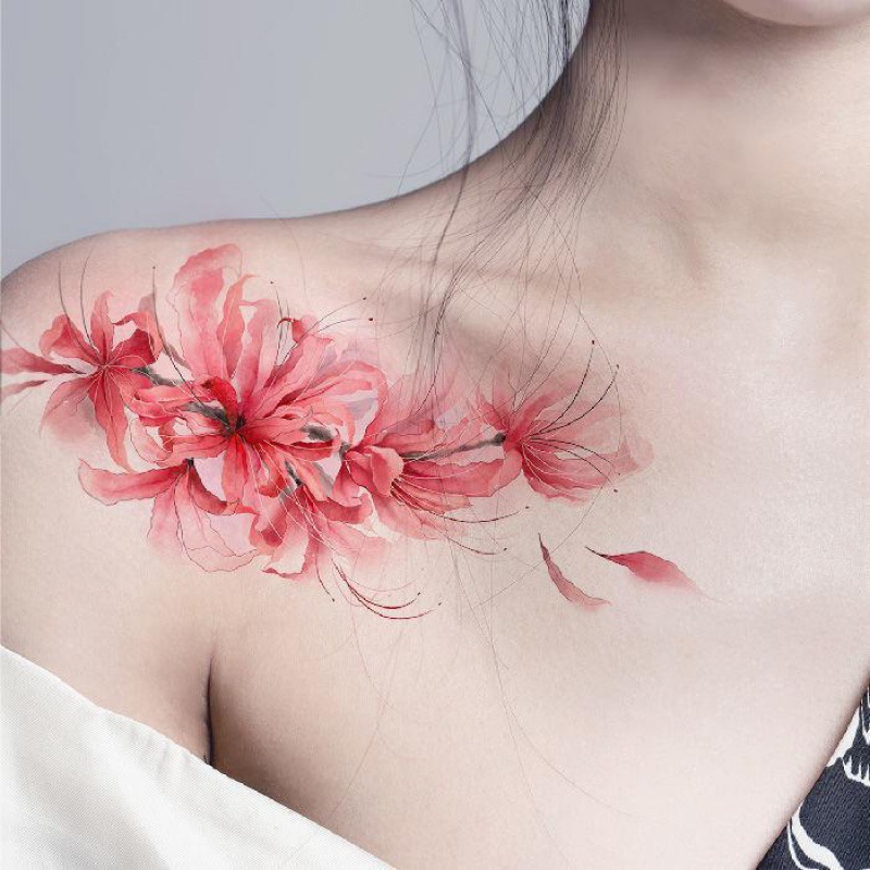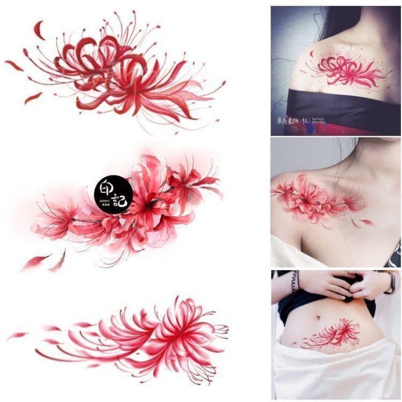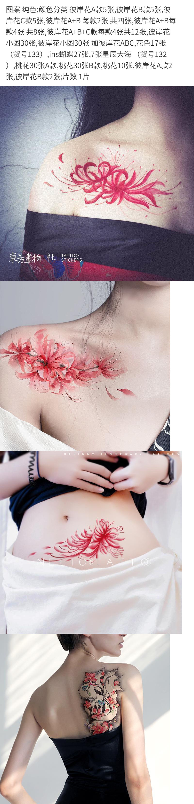 彼岸花タトゥーステッカー曼珠沙華防水女性長持ち韓国防水小新鮮セクシー鎖骨小腹花アーム