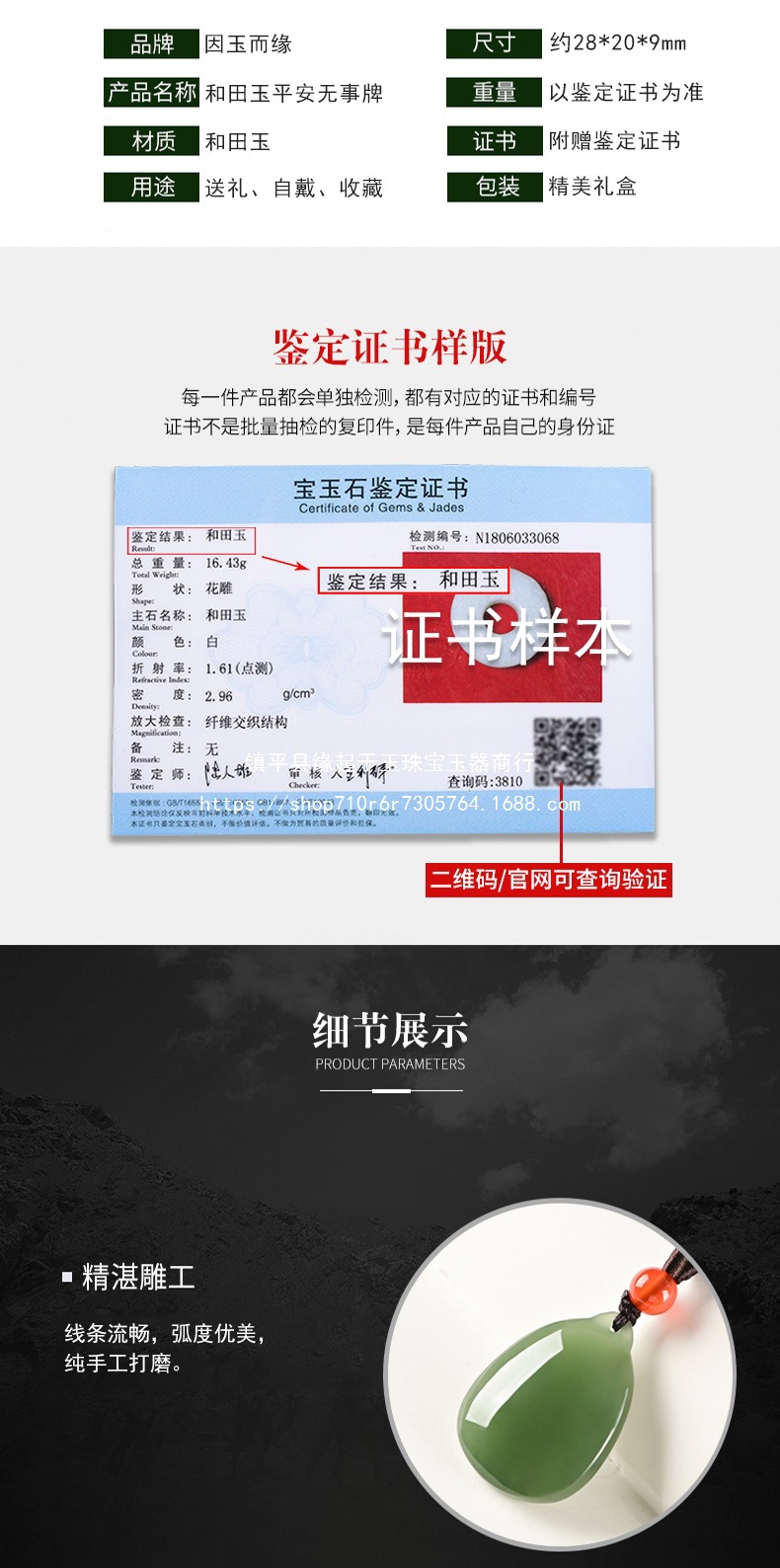 Hetian Jade シンプルな翡翠ペンダント パーソナライズされた翡翠ペンダント 男性と女性の安全なブランド翡翠ネックレス 小型子供用ベビースタイル
