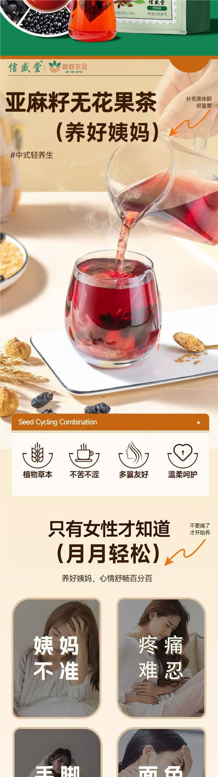 Xinshengtang 郵便農産物亜麻仁イチジク茶 50 グラム桑黒クコ黒豆雌性サプリメント巣保護健康茶
