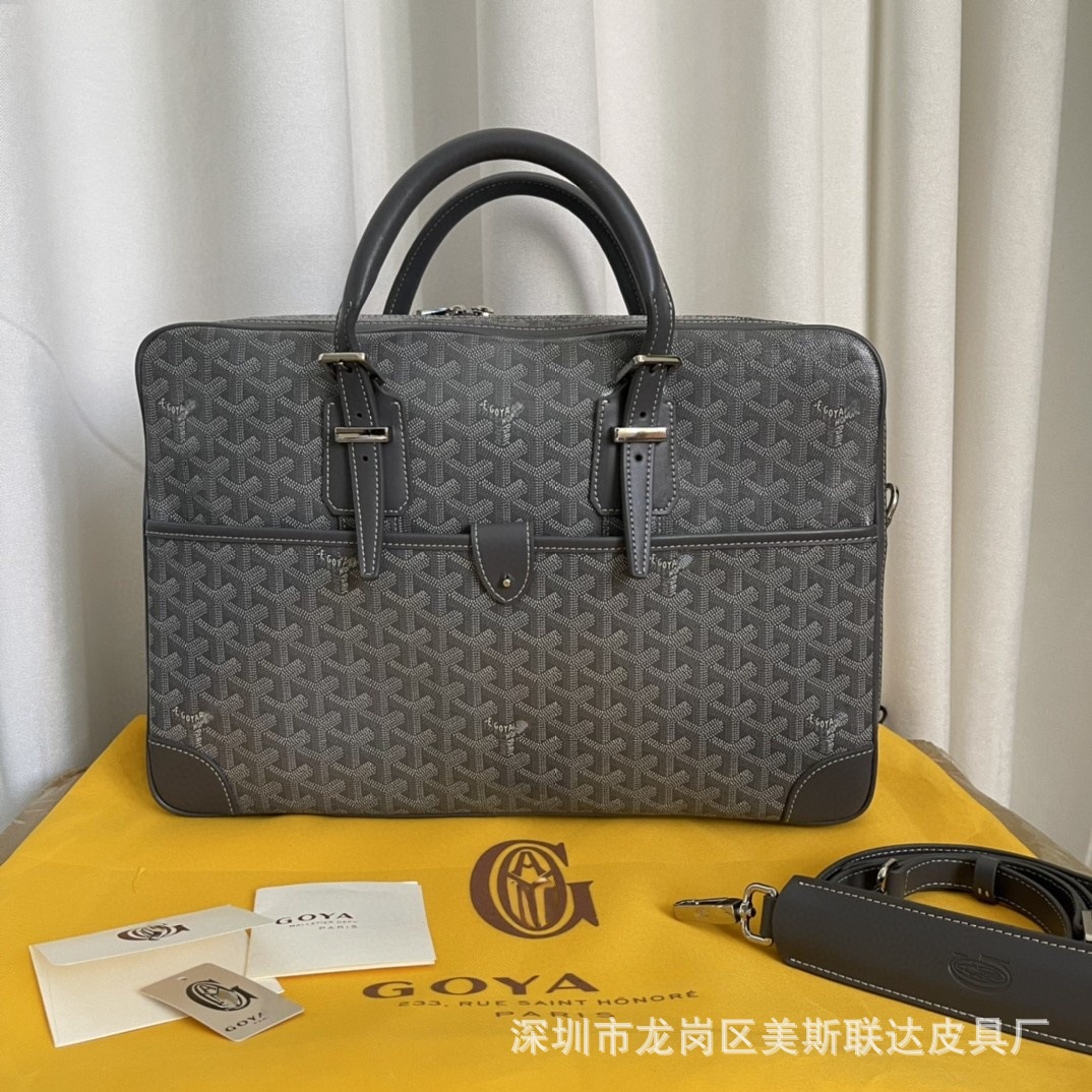 goya戈雅经典公文包帆布面料涂树脂配二层牛皮肩带男款多用电脑包