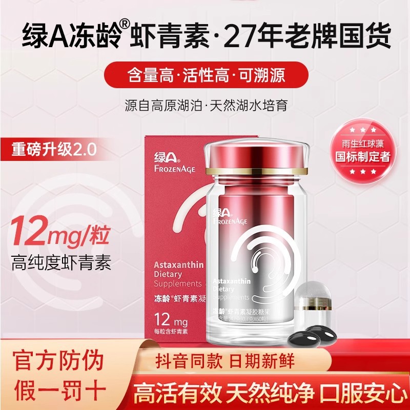 绿A冻龄®虾青素12mg天然湖水培育专利雨生红球藻口服国产60粒/瓶